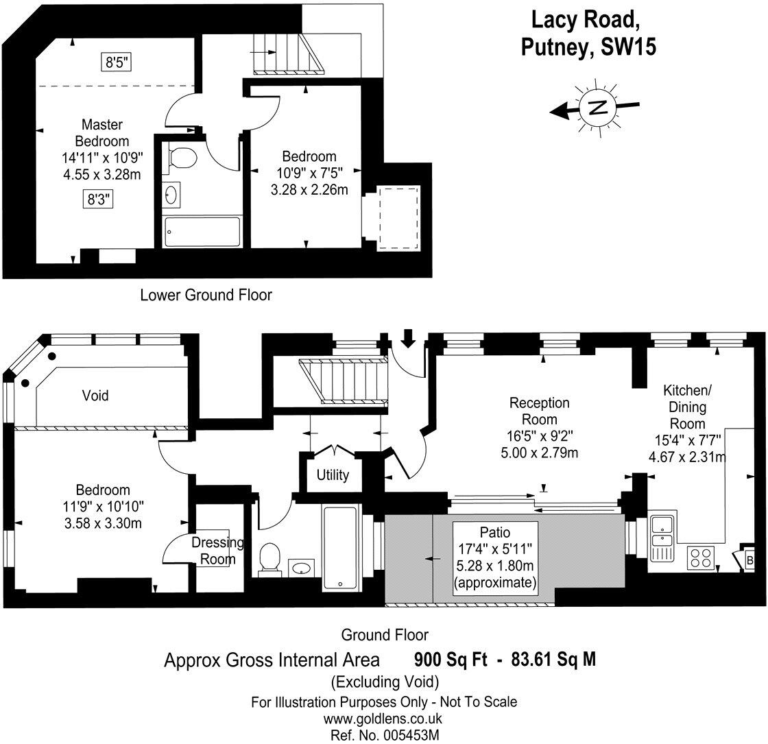 A large 3 double bedroom split level flat with a patio garden in a prime location in Putney close to both the over-ground station and Putney Bridge tube.