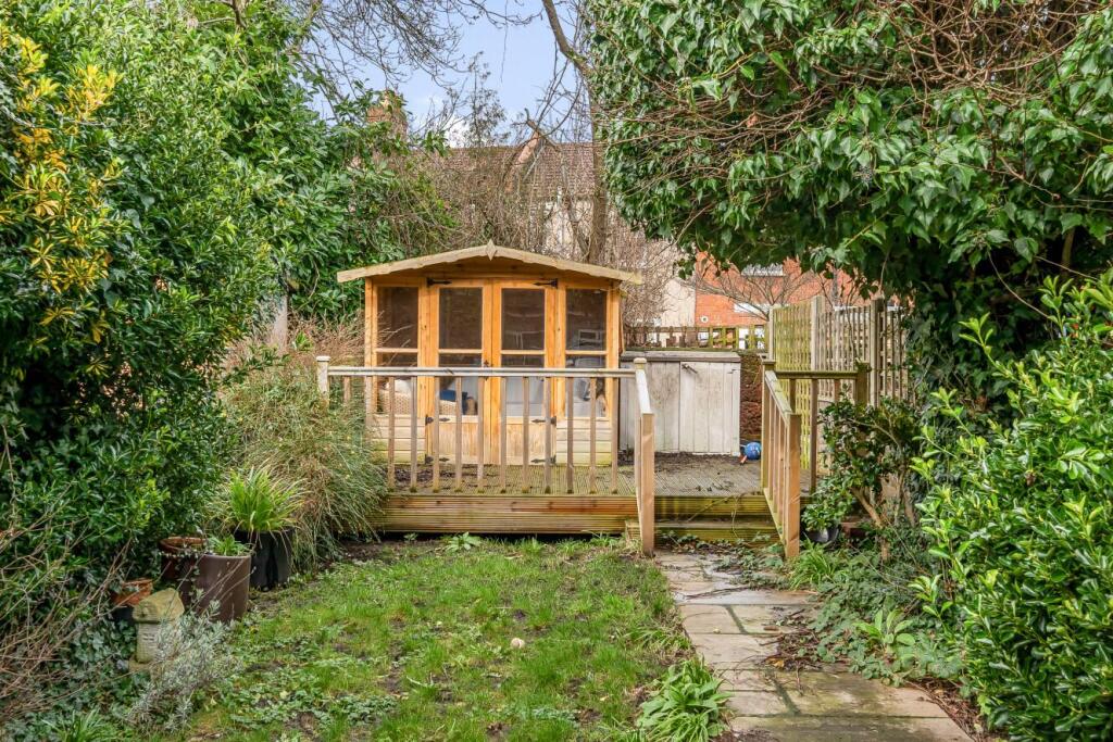 This attractive four bedroom mid-terrace period house has a a delightful 50ft secluded garden with a garden office, two bathrooms and a big through lounge. Benefiting from no onward chain.