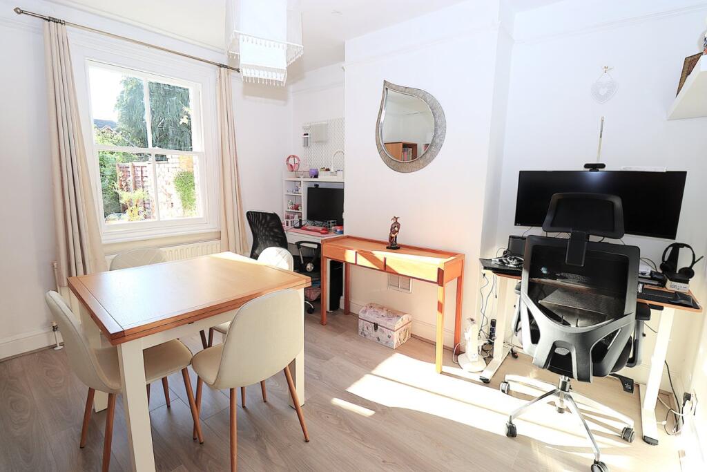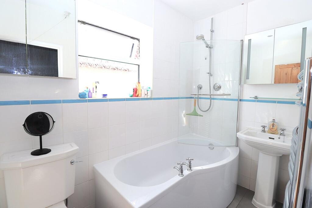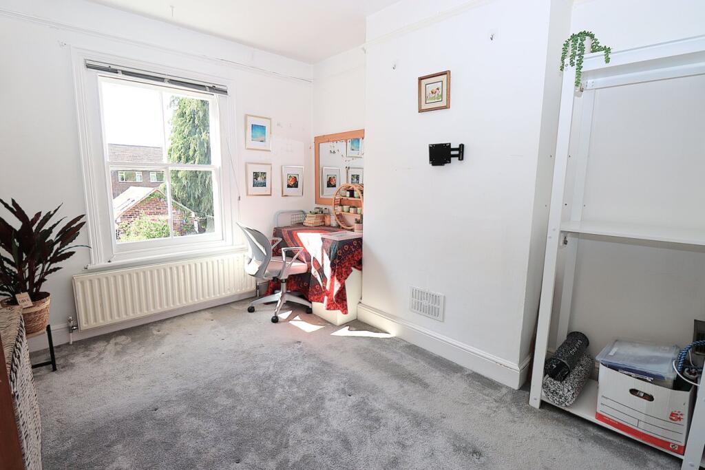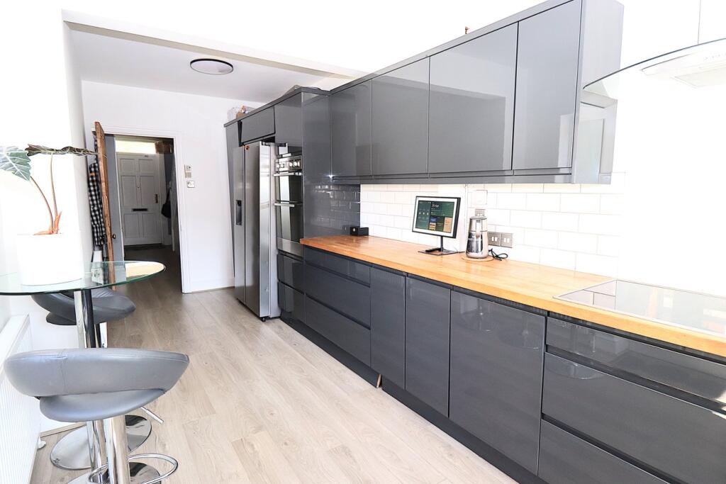 This end of terrace house is located on Elmsleigh Road in Farnborough, Hampshire. The property benefits from being close to local schools such as Tower Hill Primary School (0.60 KM) which has an outstanding Ofsted rating and several other good or requires improvement schools within a 1.24 KM radius. Transportation links are also convenient, with Farnborough Main train station approximately 1.46 KM away. The house itself has three bedrooms and one bathroom. The property includes a garden, which is a plus. While specific square footage for nearby properties is not provided, the average price per square foot in the area is £418. The list price of £485,000 should be considered in relation to the average price of £380,752 and the average size of 910 sqft in the area. The property appears to be in good condition based on the images, with a modern kitchen and updated bathrooms. However, a detailed assessment would be needed to confirm the overall condition and any potential maintenance needs.