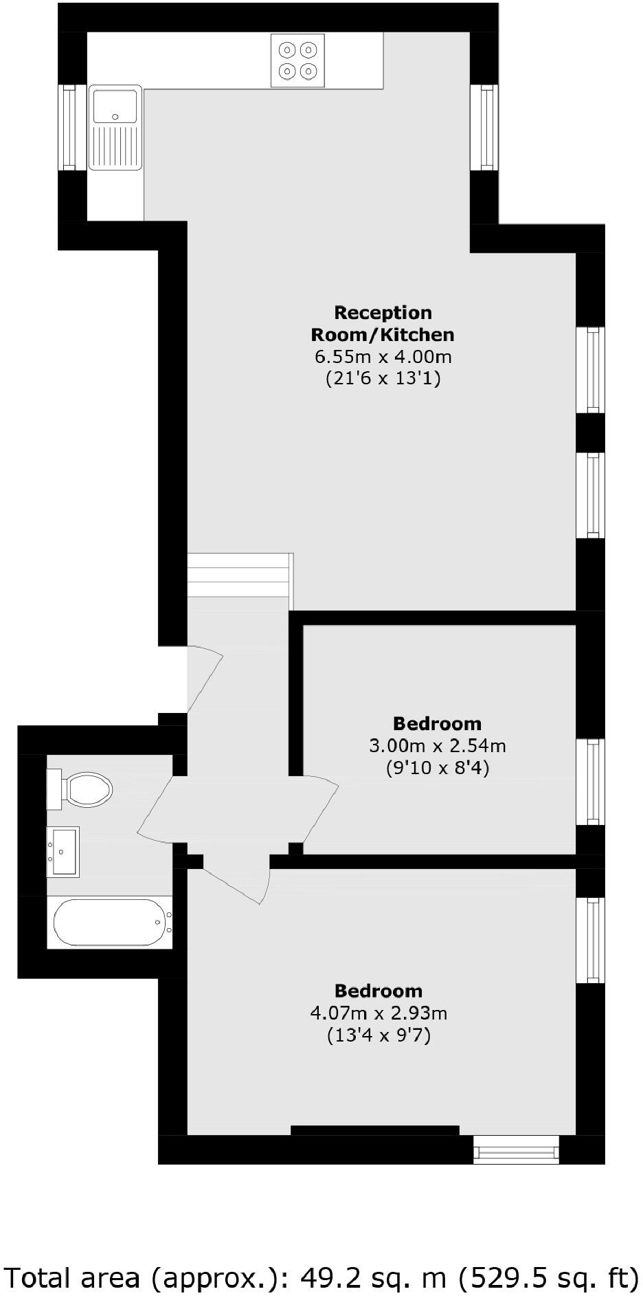 At over 529 sq ft, this two double bedroom top floor flat within this period conversion is the perfect first time buy. The property benefits from a large reception room, modern kitchen, a share of the freehold and is being offered to the market with no onward chain.