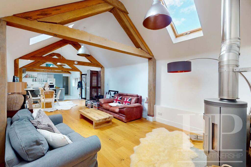 A rare opportunity to own a stunning 2-bed barn conversion with open-plan living, vaulted ceilings & exposed beams. En-suite & walk-in wardrobe in bedroom one. Underfloor heating, integral appliances & utility room. Ample parking, garage, low-maintenance garden.