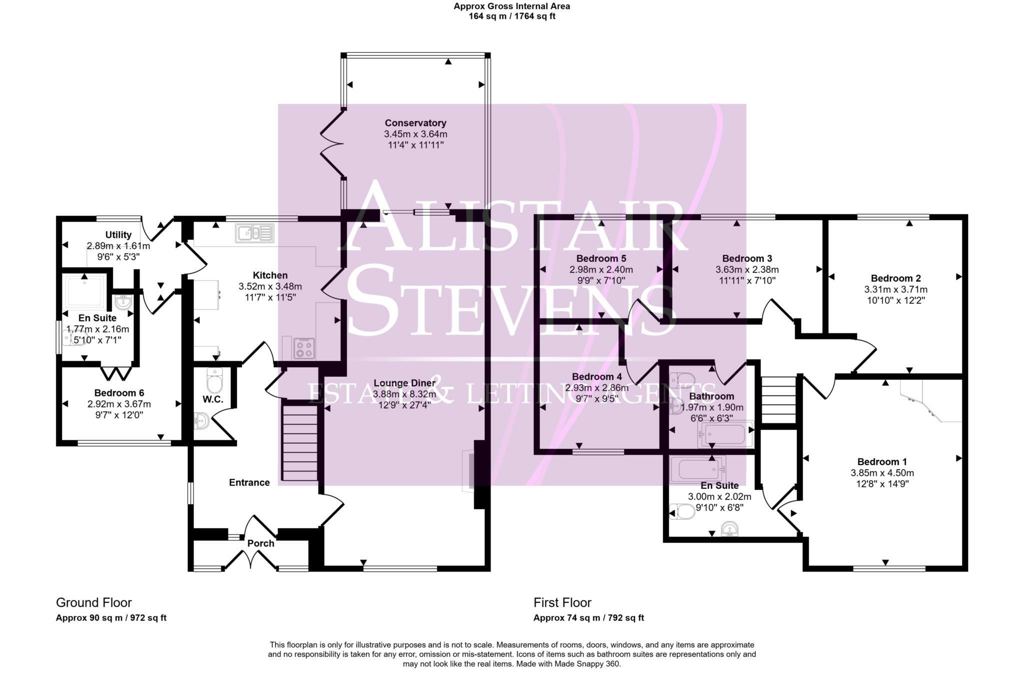 This extremely spacious, extended, modern, detached, six bedroom family home has living accommodation that comprises briefly to the ground floor of Entrance Porch, Entrance Hall, wc, fitted Kitchen, Utility room, through Lounge/Diner, Conservatory and one Bedroom with Ensuite shower/wc.