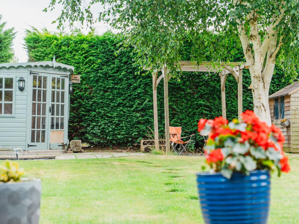 The property is a 4-bedroom detached house located in Bushby, Leicestershire. It is listed at £600,000 and has 1,307.60 sqft of living space. The property appears to be in excellent condition, having undergone recent renovations or modernisation. The kitchen and bathrooms are modern and well-equipped. The house benefits from a large garden with a shed and hot tub, adding to its appeal. The location is desirable, with nearby schools and transportation links. However, the average price per sqft in the area is lower than the listed price of this property, which might suggest a higher-than-average price per sqft.
