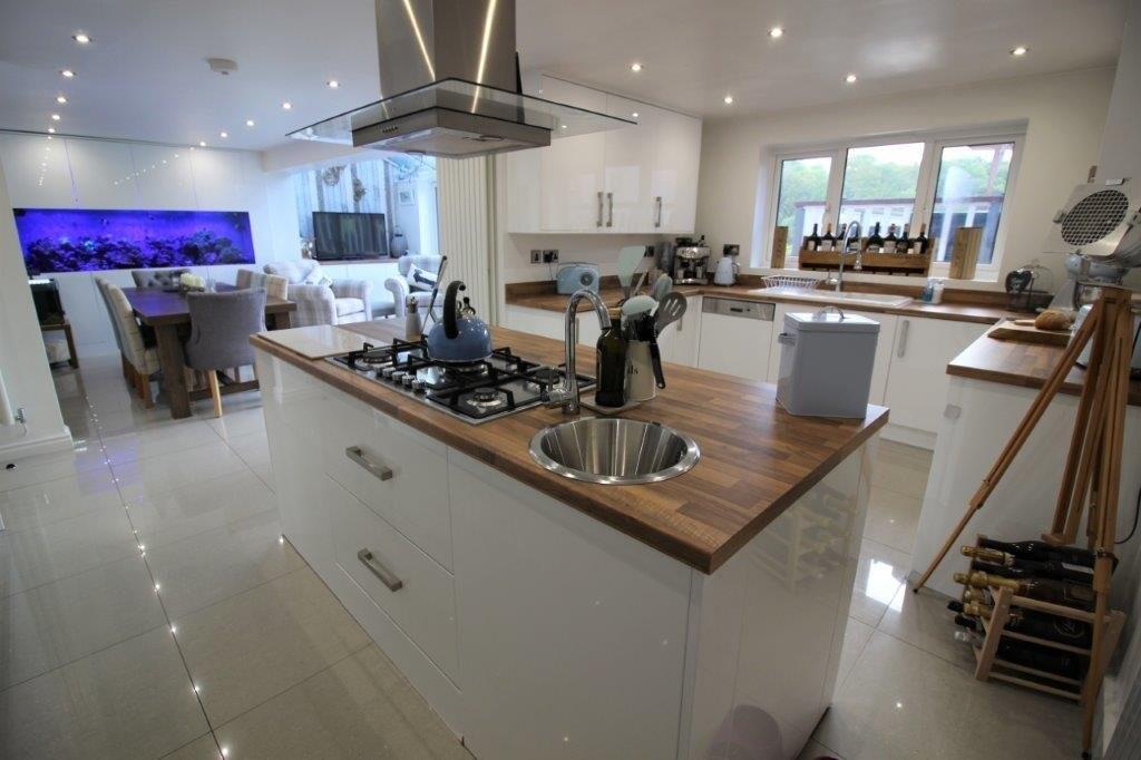 **OLD GLOSSOP LOCATION**Stunning executive detached home, fully modernised, featuring lounge, snug, open-plan kitchen, dining area and orangery, four bedrooms with master en-suite and air conditioning, off-road parking, garage, and a private rear garden with Astro-turf and decking.