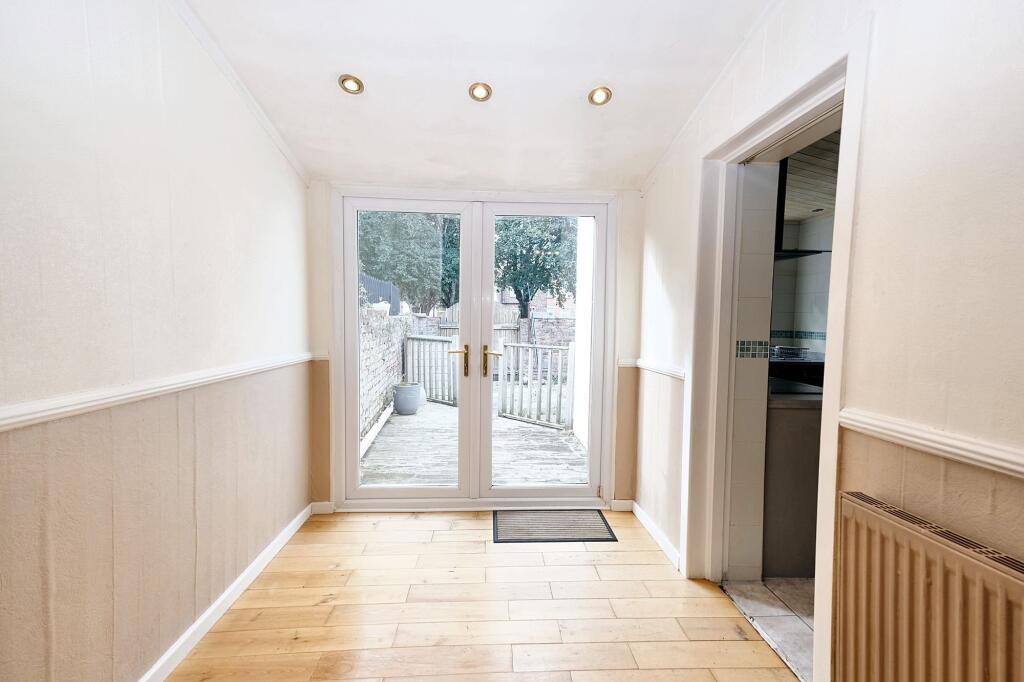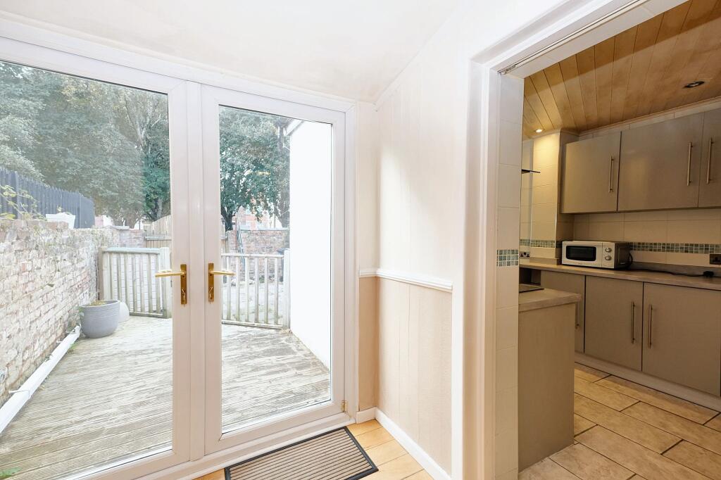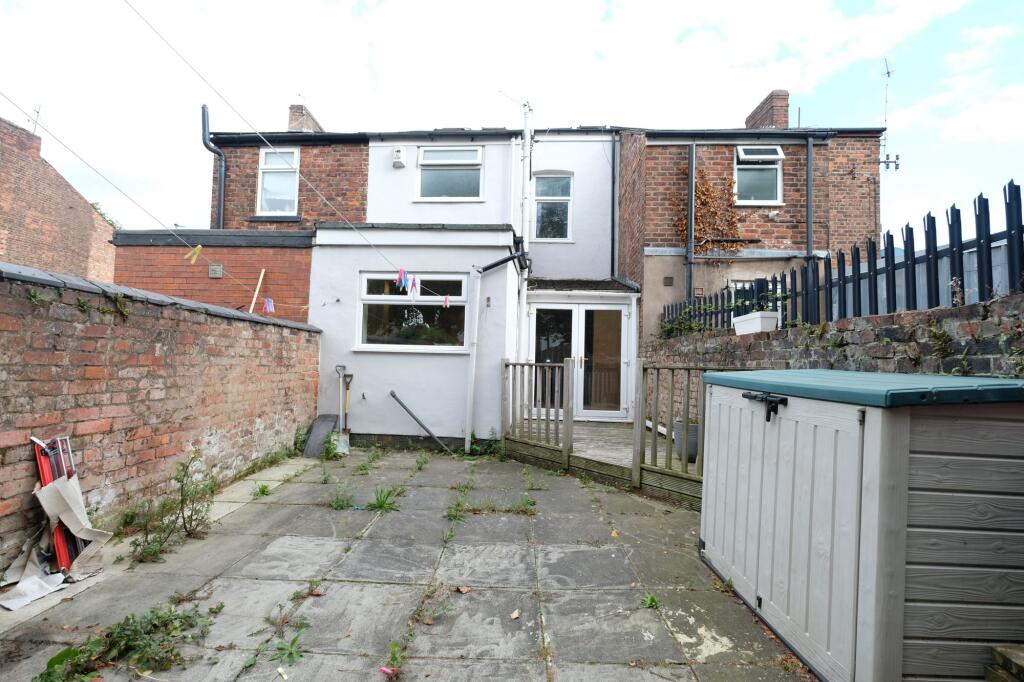 This is a two-bedroom terraced house in Eccles, Salford. The property benefits from its proximity to local schools and transport links. The house has a garden. The property is in reasonable condition, with a modern kitchen and bathroom, but could benefit from some cosmetic improvements. The asking price of £220,000 appears reasonable for the area and property type.