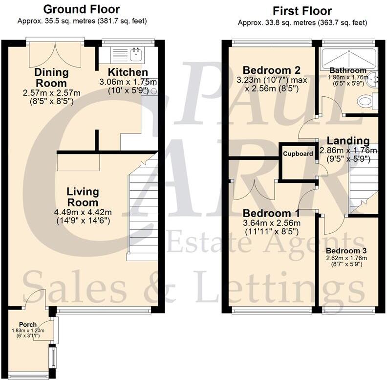 The list price is £185,000. The average price for properties in the area is £261,355, with an average price per square foot of £214. This property is smaller than average at 751.61 sqft, which could justify a lower price. However, nearby comparable properties, while lacking precise sqft data, suggest that the property may be slightly underpriced considering its condition and location. The proximity to Landywood train station and local schools adds to its appeal.