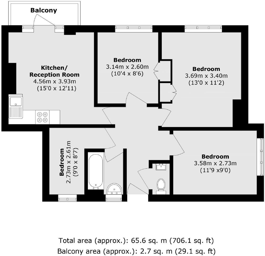 A spacious four bedroom apartment in the heart of Shepherds Bush. This property has three double bedoroms and a fourth single bedroom, open plan kitchen living space, bathroom, separate WC and a private balcony. This would be ideal for a first home or investment and is sold chain free.