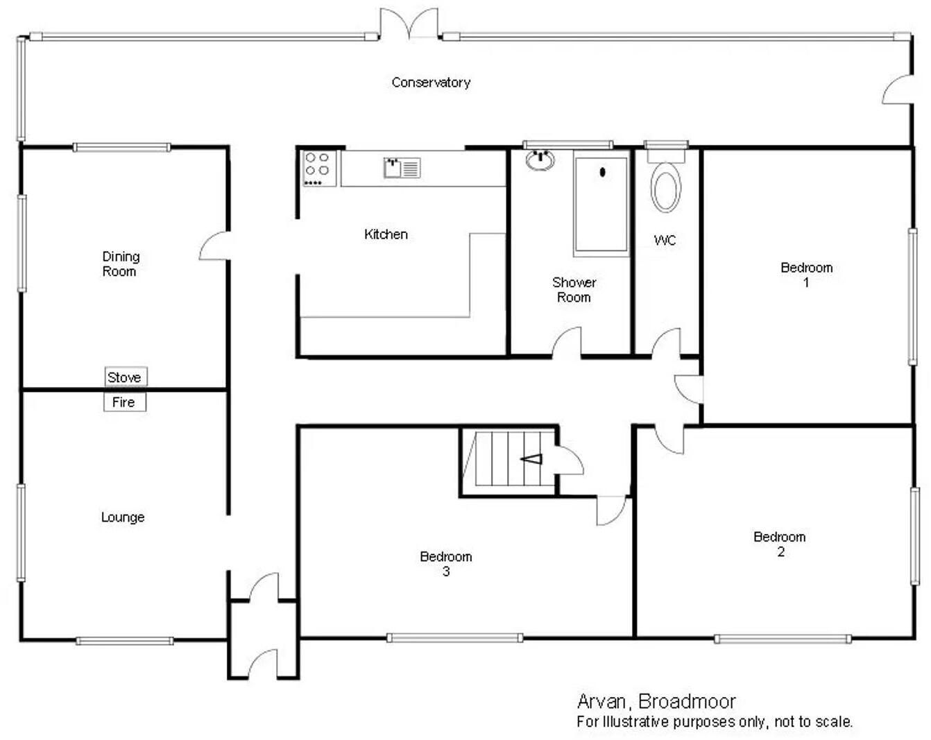 Detached bungalow in Broadmoor village with 3 beds, 2 loft rooms, garden, parking, and potential for extension. Needs modernisation. Close to amenities in Kilgetty.