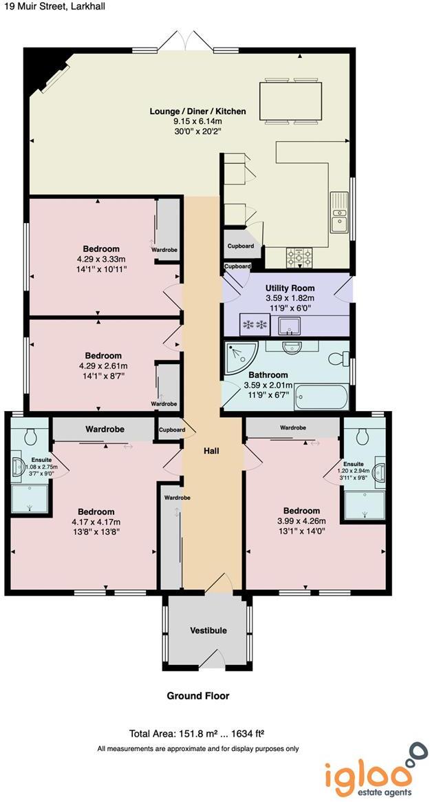 The property is a 4 bedroom, 3 bathroom bungalow located in Larkhall, South Lanarkshire. The list price is £245,000. Based on the images provided, the property appears to be in excellent condition. The interior is modern and well-maintained, with updated fixtures and fittings. There is evidence of air conditioning and a modern kitchen and bathrooms. The exterior is also well-maintained with a patio and garden. The property benefits from having a garden. The size is not specified, but the images show a well-maintained patio area and lawn. The average house price in the area is £470,683, significantly higher than the list price of this property. The average price per square foot is £576.00. Without knowing the square footage of the property, a precise price per square foot comparison cannot be made. However, given the average price in the area and the apparent good condition and inclusion of a garden, the list price of £245,000 could be considered reasonable, potentially representing good value for money. Further investigation into the actual square footage would be needed to confirm this. The property’s proximity to Larkhall train station (0.47 KM) is a positive aspect, offering convenient access to public transportation. The lack of information regarding nearby schools makes it impossible to comment on the property’s proximity to schools.