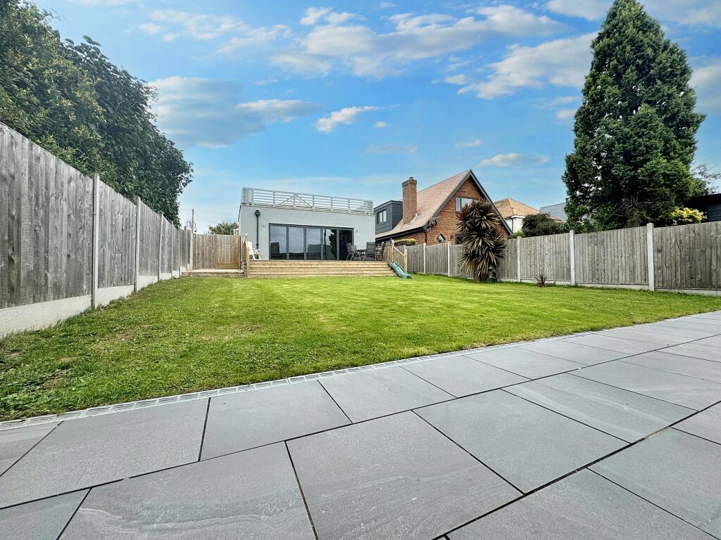 This 4-bedroom, 2-bathroom property located on Canterbury Road West in Cliffsend, Thanet, Kent, is presented in excellent condition. The interior boasts contemporary features, including a modern kitchen with high-end appliances and a sleek design. The bathrooms are equally stylish, featuring clean lines and modern fixtures. The overall impression is one of a recently renovated or meticulously maintained home. The home includes a considerable garden space with both paved and grassy areas, along with a detached structure that could serve as a home office, studio, or guest accommodation. The property also appears to have off-street parking, as suggested by the external photos. The location in Cliffsend offers a balance between a peaceful environment and access to nearby amenities and transport links to Ramsgate and other towns. Given the lack of square footage data for nearby properties, a precise analysis of the property’s price-per-square-foot value compared to the local market is difficult. However, considering the high quality of the renovation and the inclusion of the additional structure and substantial garden, the asking price appears to be reasonable within the context of the local property market.