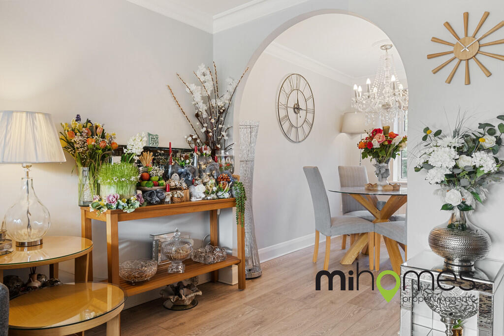 This 2-bedroom, 2-bathroom flat in Enfield, Greater London is listed at £275,000. The property is situated in the Highlands area, with nearby schools such as Merryhills Primary School and St John’s Cofe Primary School. Transportation links include Gordon Hill and Crews Hill train stations. The flat appears to be in good condition, with modern fixtures and finishes. While the plot size is relatively small at 704 sqft, the property itself offers 518.54 sqft of living space. Compared to the area average price of £619,422 and average price per sqft of £634, this property seems to be significantly underpriced. However, more information on the specifics of the property and its condition would be needed to make a definitive conclusion. The images show the property to be well-maintained and modern.