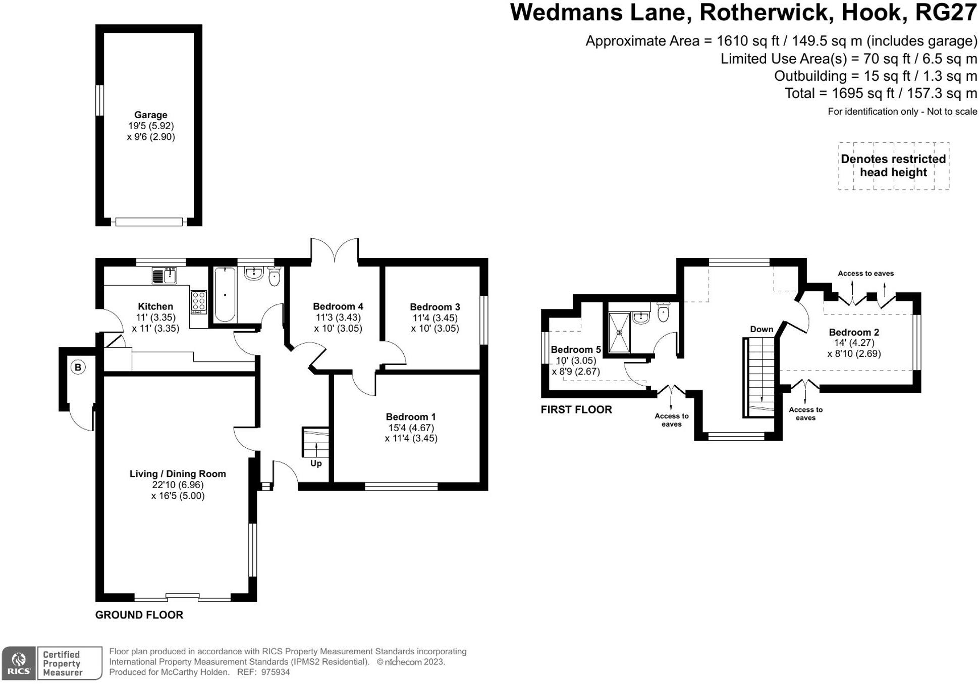 This is a detached bungalow located on Wedman’s Lane in Rotherwick, Hook, Hampshire. The property features four bedrooms and two bathrooms, with a total square footage of 1,313.84. The property includes a well-maintained garden and modern interior. Nearby schools include Whitewater Church Of England Primary School and Hook Junior School. Transportation links include Hook railway station. The listing price is £995,000.