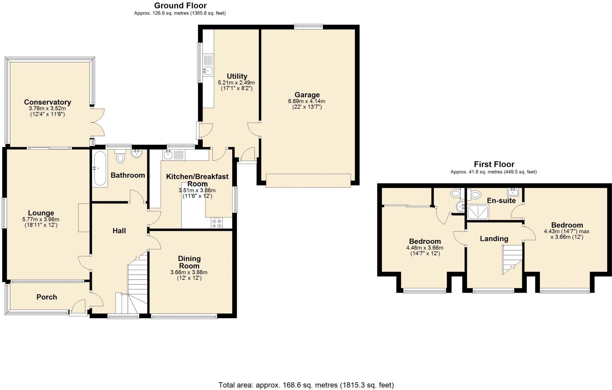 This property is a detached bungalow located in Shifnal, Shropshire. It has two bedrooms and two bathrooms, and is approximately 1,977 square feet in size. The property is situated on a plot of 1,814 square feet and benefits from a conservatory and a detached garage. The asking price is £399,950.