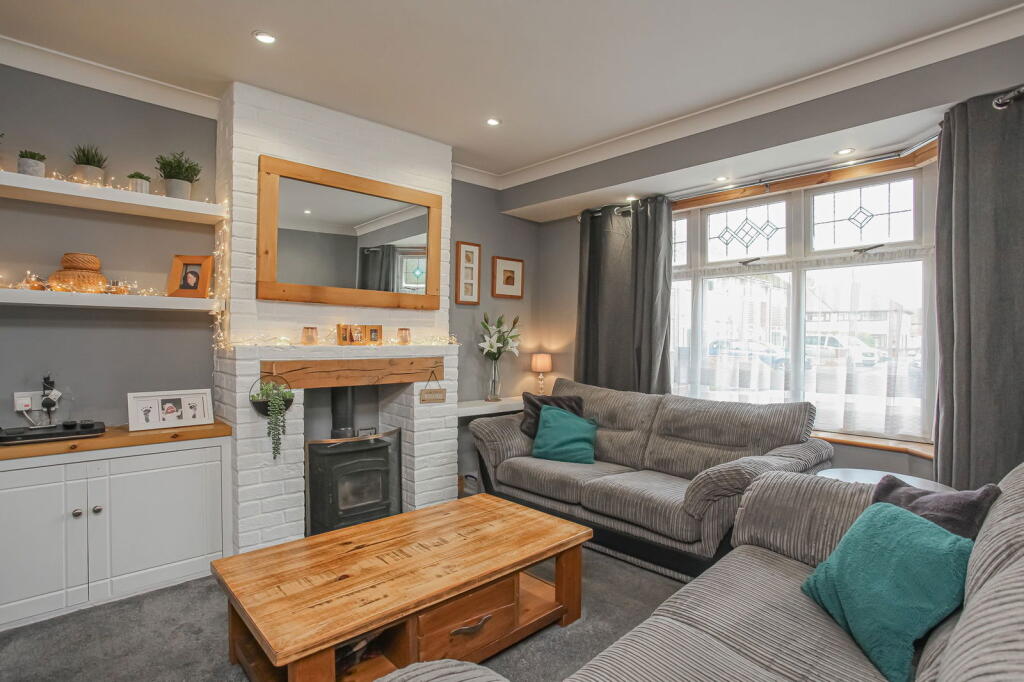 A deceptively enlarged three bedroom house, offered in excellent decorative order throughout. Recessed porch | Entrance hall | Living room with feature bay window | Kitchen/breakfast room | Further dining/family room | Two first floor bedrooms | Bathroom | Large landing/study area...