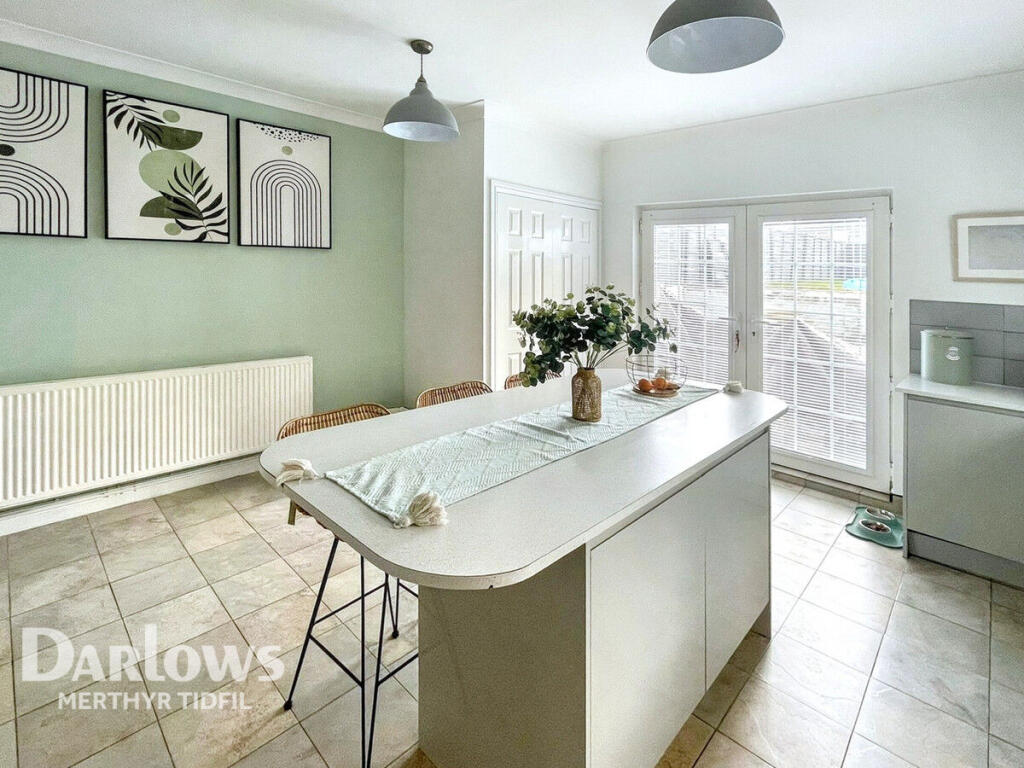 Modern 3-bed end-link in Heolgerrig with porch, spacious living area, stylish kitchen with island and French doors to garden. Features modern bathroom, 3 bedrooms and attic with conversion potential. Close to schools, shops and local amenities