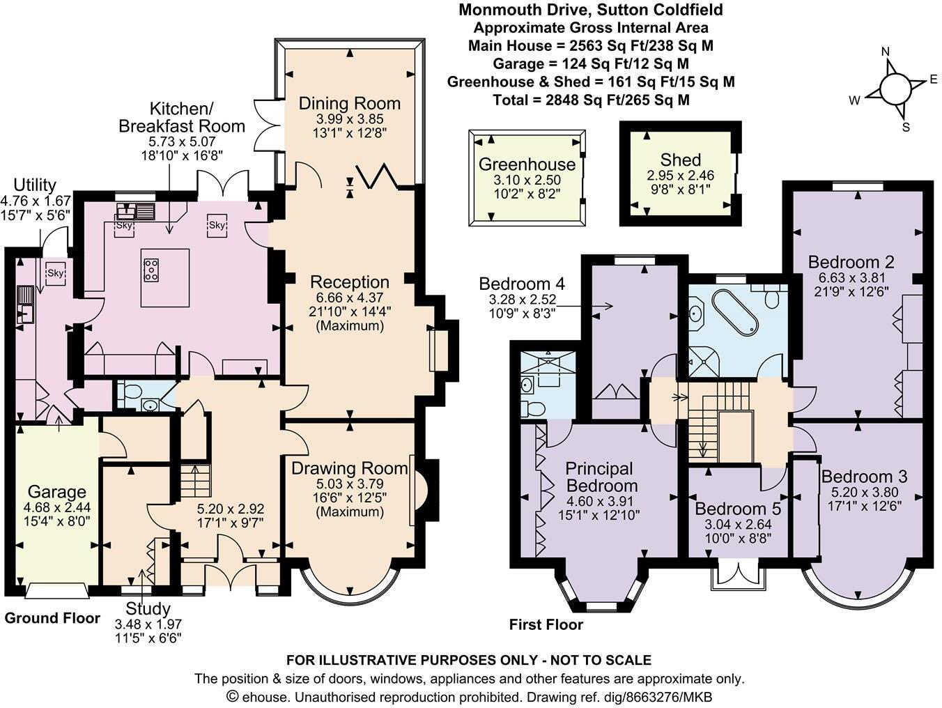 This is a detached property located on Monmouth Drive in Sutton Coldfield. It features five bedrooms and three bathrooms. The property appears to be well-maintained and in good condition, with a modern interior. It also benefits from a large garden. However, the asking price of £895,000 seems high compared to the average price per square foot in the area and nearby property prices.