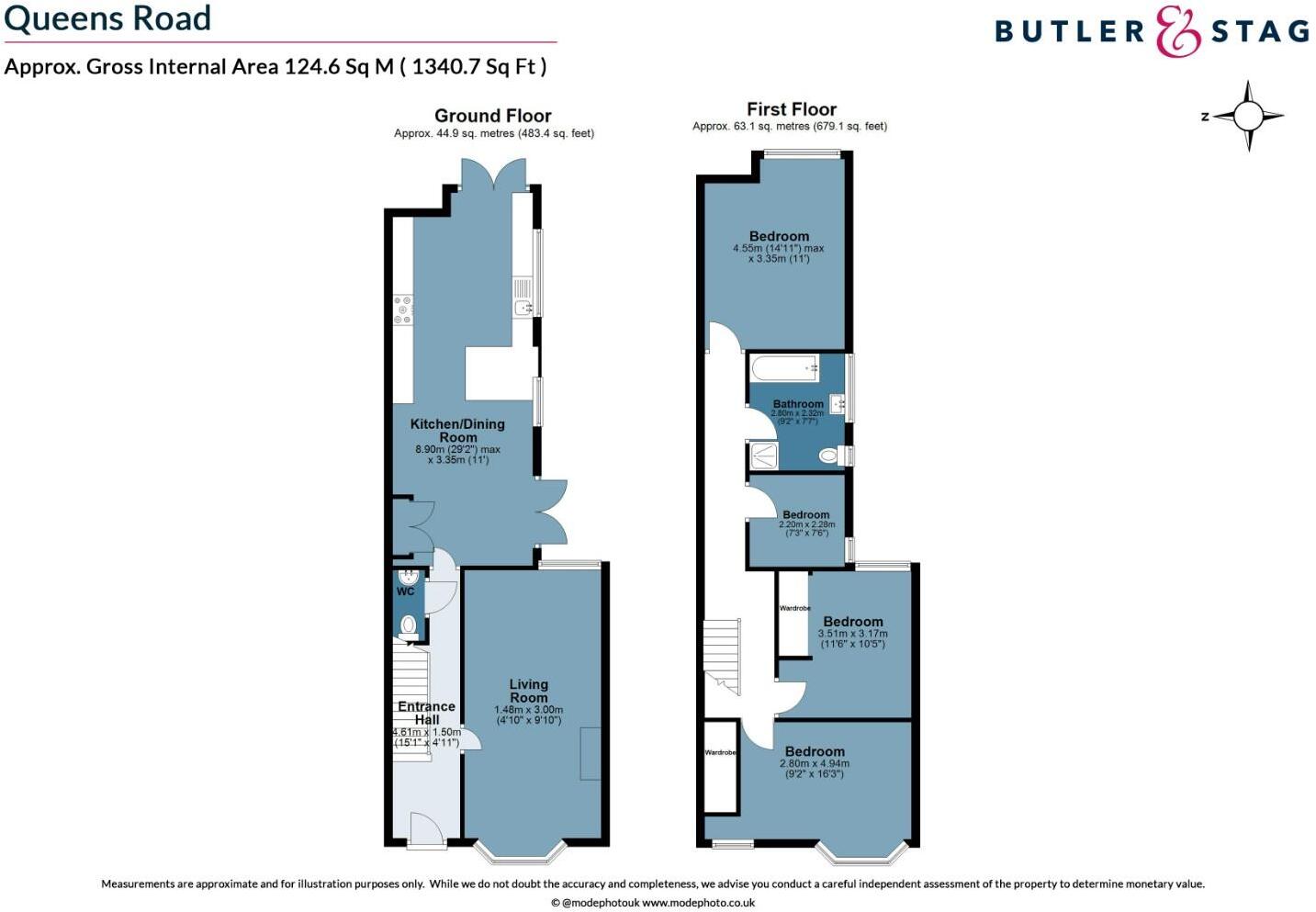 This is a semi-detached property on Queens Road, Loughton, presented by Butler & Stag. It features four bedrooms and one bathroom, with a total square footage of 1,341.18 sqft. The property is listed at £875,000. The interior has been modernised, particularly the kitchen, and the property appears to be in good condition. While the garden is present, it’s mostly gravelled. The location is convenient, with nearby schools and transportation links. The price seems reasonable for the area and the property’s condition.