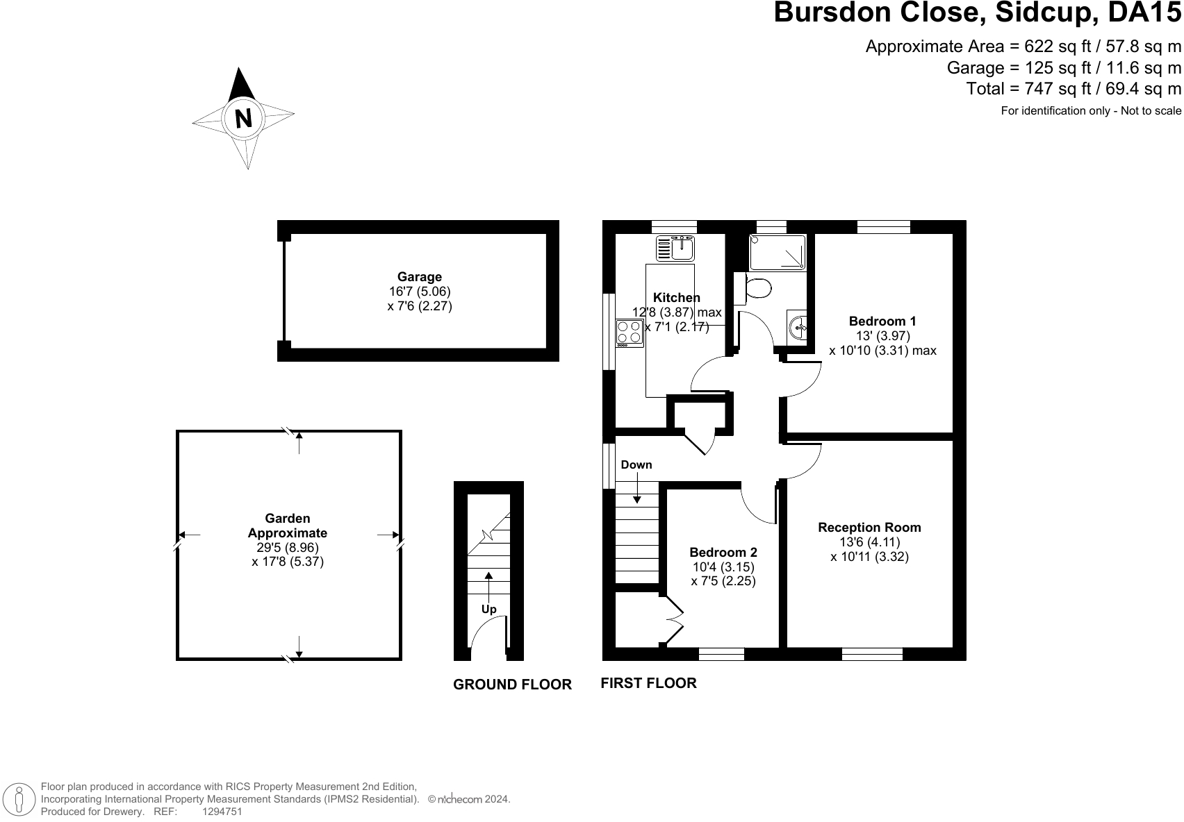The property is a 2 bedroom maisonette located in Bursdon Close, Sidcup, DA15 8AQ. It is in the Blackfen & Lamorbey locality of Bexley, Greater London. The list price is £350,000 and the property is 747 sqft. The plot size is 0 sqft.