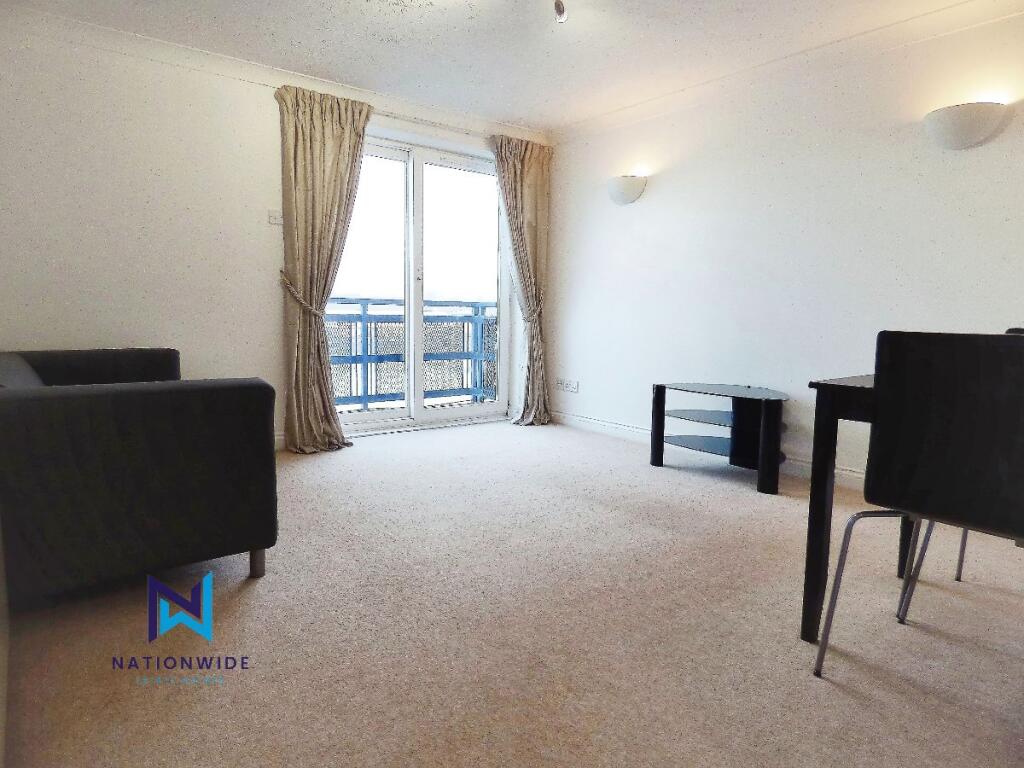 Fantastic, furnished one-bedroom apartment on Preston Docklands with stunning marina views. Features include a spacious living room with balcony, modern kitchen with appliances, double bedroom with fitted wardrobes, and a bathroom with over-bath shower. Residents' parking and secure entry system