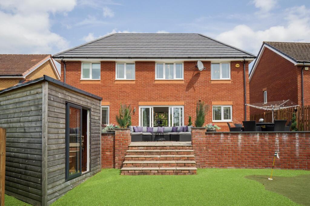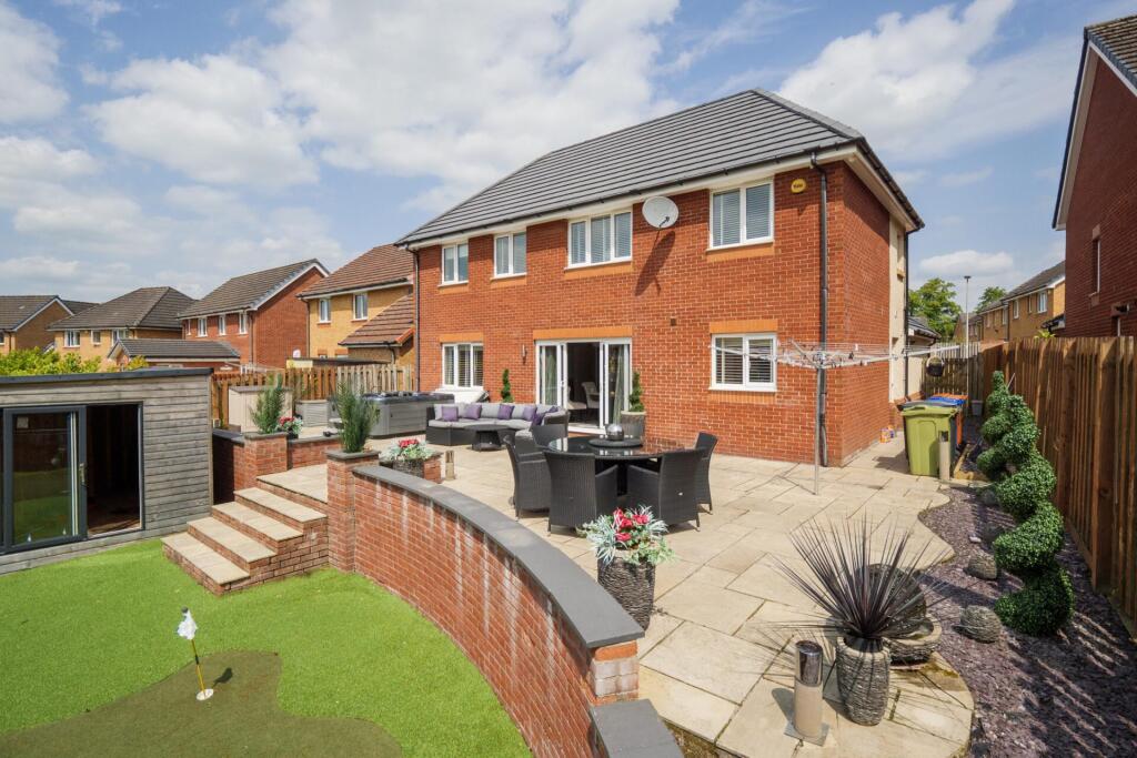 This is a detached villa located in Lenzie, East Dunbartonshire. The property has 5 bedrooms and 5 bathrooms. The property appears to be in excellent condition, with modern interiors and well-maintained exteriors. The property has a well-maintained garden with a patio area, a hot tub, and an artificial lawn.