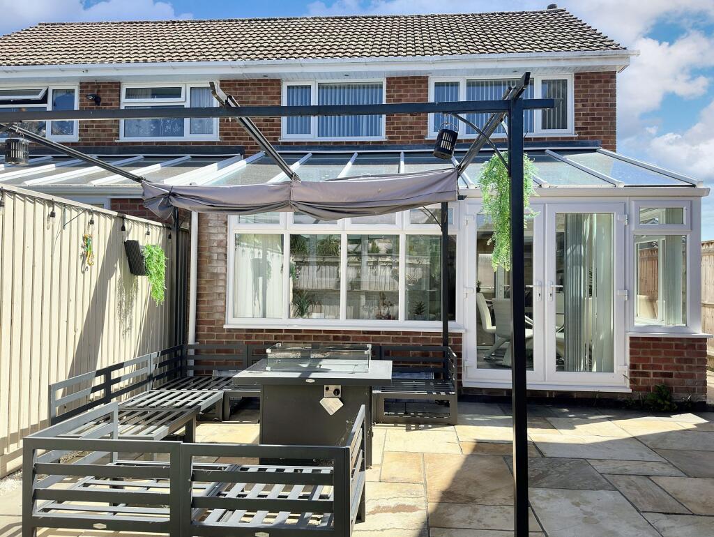 The property is a 3-bedroom semi-detached house located in Holbury, New Forest, Hampshire. It is listed at £310,000 and has 1,115 square feet of living space. The property benefits from a modern kitchen and conservatory, suggesting recent renovations. The images show a well-maintained property in good condition with a patio and garden area. The location is convenient, with nearby schools receiving good Ofsted ratings and several train stations within a reasonable distance. While the plot size is listed as 0.00 sqft, the photos clearly show a garden, albeit a relatively small one. Compared to the average price per square foot in the area (£427), the listing price of £310,000 appears reasonable, especially considering the apparent recent renovations and good condition of the property. However, the lack of plot size data in the provided information makes a definitive statement on land value difficult.
