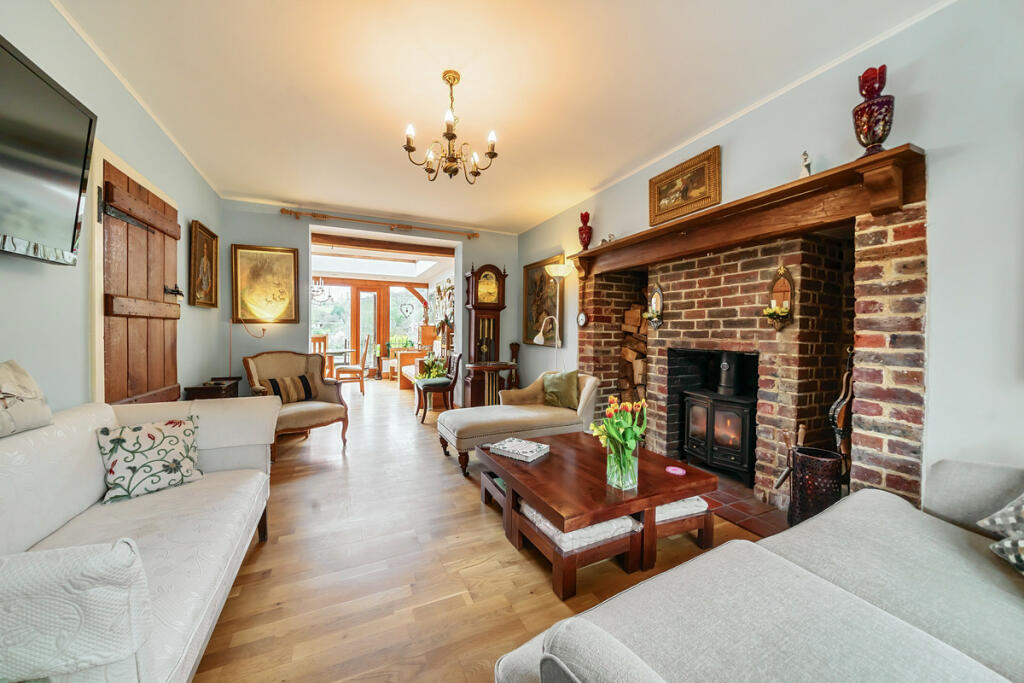 This four-bedroom cottage located in the desirable village of Shamley Green, Surrey, offers a blend of traditional charm and modern comforts. Nestled on a private road, the property benefits from a tranquil setting while remaining within reach of local amenities. The photos reveal a well-maintained property with an updated kitchen and bathrooms, while maintaining many original features. While the interior design style might be seen as traditional by some, the property is overall presented in good condition. The exterior reveals a pleasant garden, and the cottage’s brickwork and tiled roof give it a classic and attractive appearance. While precise plot size information isn’t given, the property includes a garden with a greenhouse and patio, ideal for relaxing. The location is convenient, with good schools and relatively close proximity to train stations providing access to Guildford and London. This appealing mix of features makes it a worthwhile proposition for buyers seeking a family home in a desirable rural Surrey location. The lack of detailed plot size information and varying prices per sqft of comparable properties makes precise pricing analysis difficult. However, the asking price could be considered in line with property values in the area and the overall appeal of the property, while there is potential for some price negotiation.