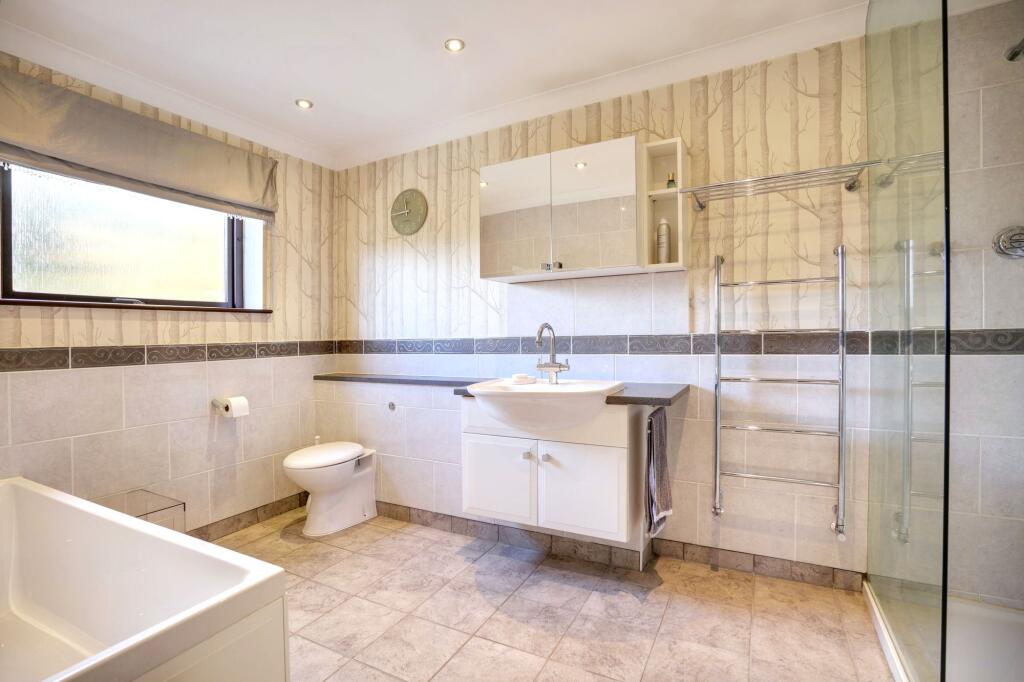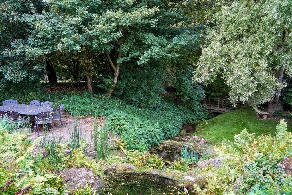 This is a substantial detached property in East Farleigh, near Maidstone, Kent. The house features five bedrooms, three bathrooms, a large garden with river frontage, and a double garage. The interior appears to be well-maintained and modern. The property benefits from its proximity to local amenities, including schools and transportation links. The large plot size and river frontage are particularly attractive features. The property is modern and in good condition. The property also benefits from a study, fireplace, ensuite, utility room and patio. The property is located close to the East Farleigh train station and several schools.