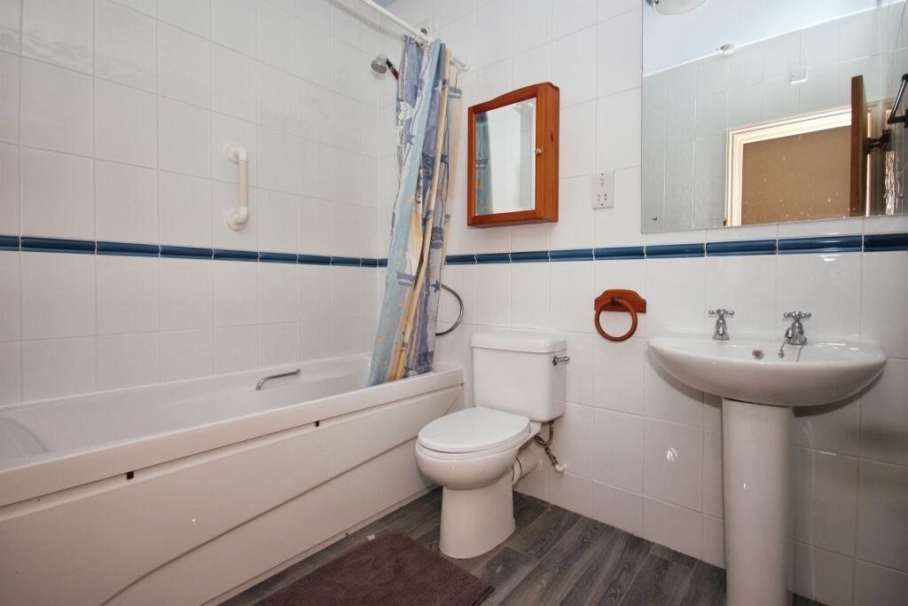 This is a two-bedroom flat in The Old Courtyard, Weston Under Wetherley, Leamington Spa. The property offers 840 sqft of living space and includes two bathrooms. The flat appears to be in generally good condition, with modern fixtures in the kitchen and bathrooms. It is located in close proximity to local transport links. The property is listed for £240,000.