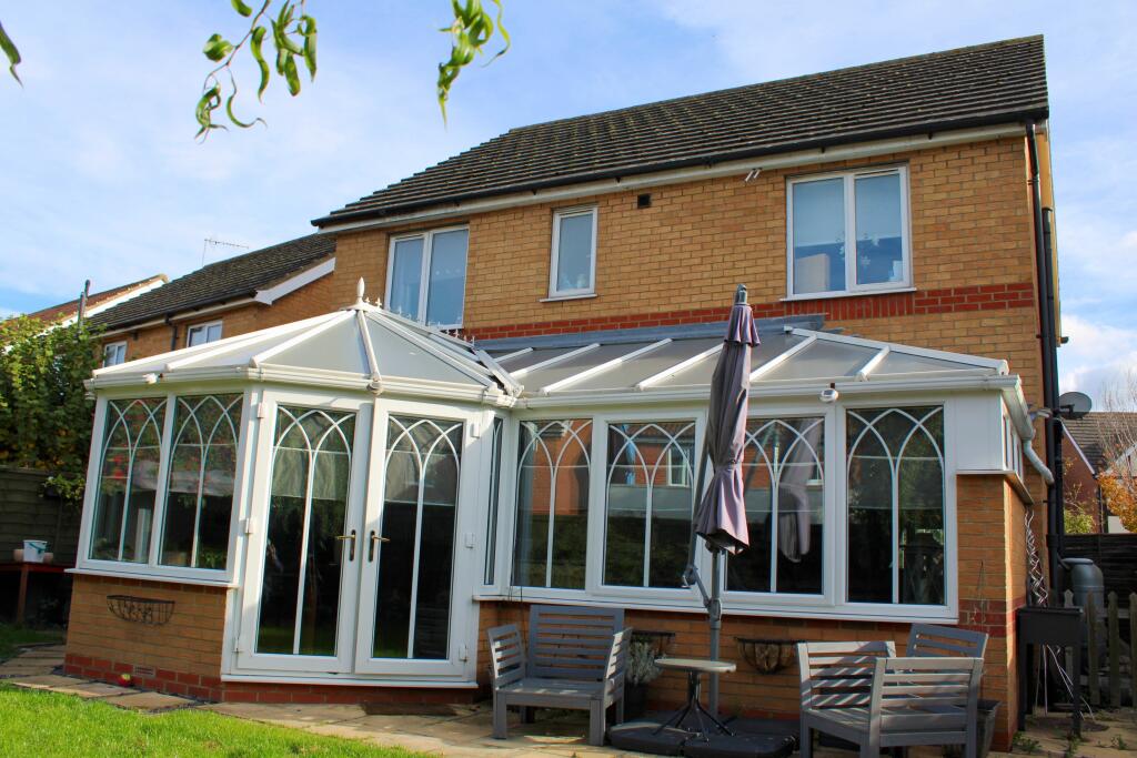 Modern 4 bedroom detached family home with parking and enclosed rear gardens. Lounge, dining room, kitchen with appliances and 7m conservatory. Convenient for town centre amenities.