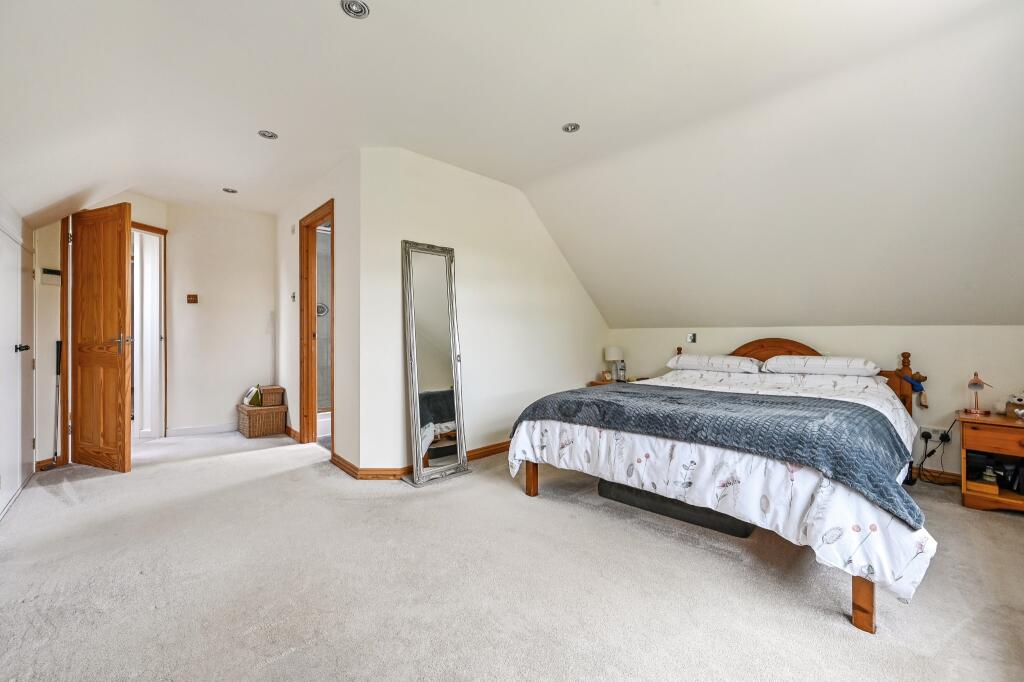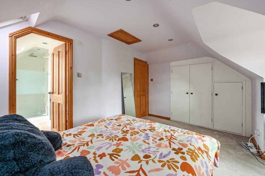 The chalet-style house itself appears to be well-maintained and presented to a high standard, based on the provided images. The interior photographs showcase a recently modernised kitchen and bathrooms, suggesting that significant investment has been made in updating the property. The property also benefits from a substantial plot size of 1996 sqft, including a sizeable garden area with a patio, providing ample outdoor space.