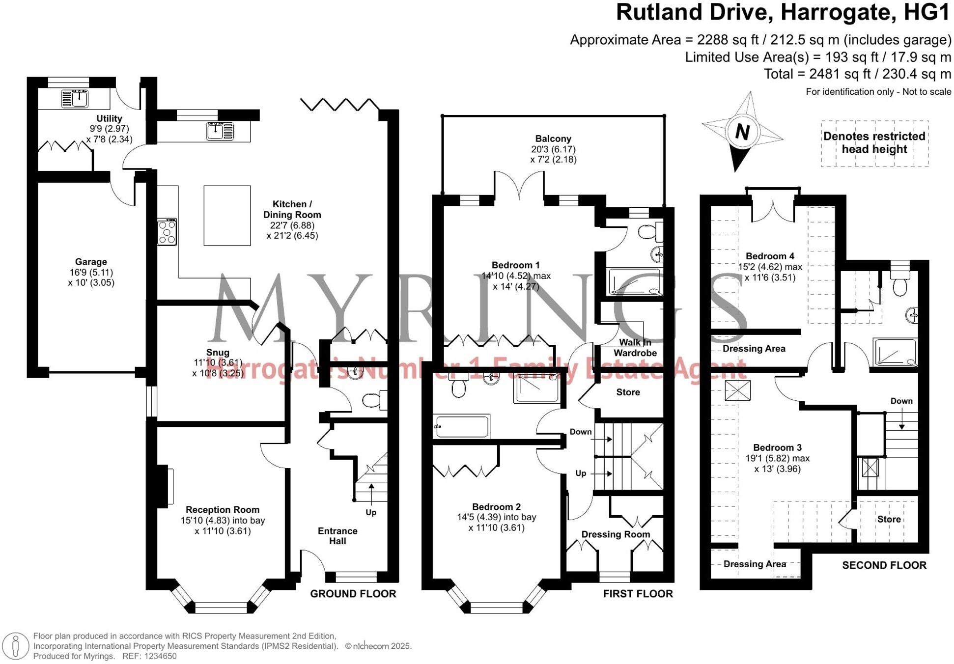 This five-bedroom, three-bathroom detached house located on Rutland Drive in Harrogate’s exclusive Duchy Estate presents a compelling opportunity for discerning buyers. The property’s condition is outstanding, exhibiting a high-end renovation or new build finish. Images reveal a modern, stylish interior, featuring a contemporary kitchen, luxurious bathrooms, and spacious living areas. The exterior also presents extremely well. The inclusion of a substantial garden, while the exact size is not stated, further enhances its appeal. The location within the Duchy Estate, characterized by similar high-value homes, adds significant value. The proximity to schools and Harrogate Train Station provides both family and commuter advantages. While a detailed price-per-square-foot comparison with immediately similar homes is lacking, the list price seems appropriate given the property’s quality, condition, and prime location within this highly sought-after area. Overall, this property offers a blend of luxury, convenience, and a desirable address in a prestigious neighbourhood.