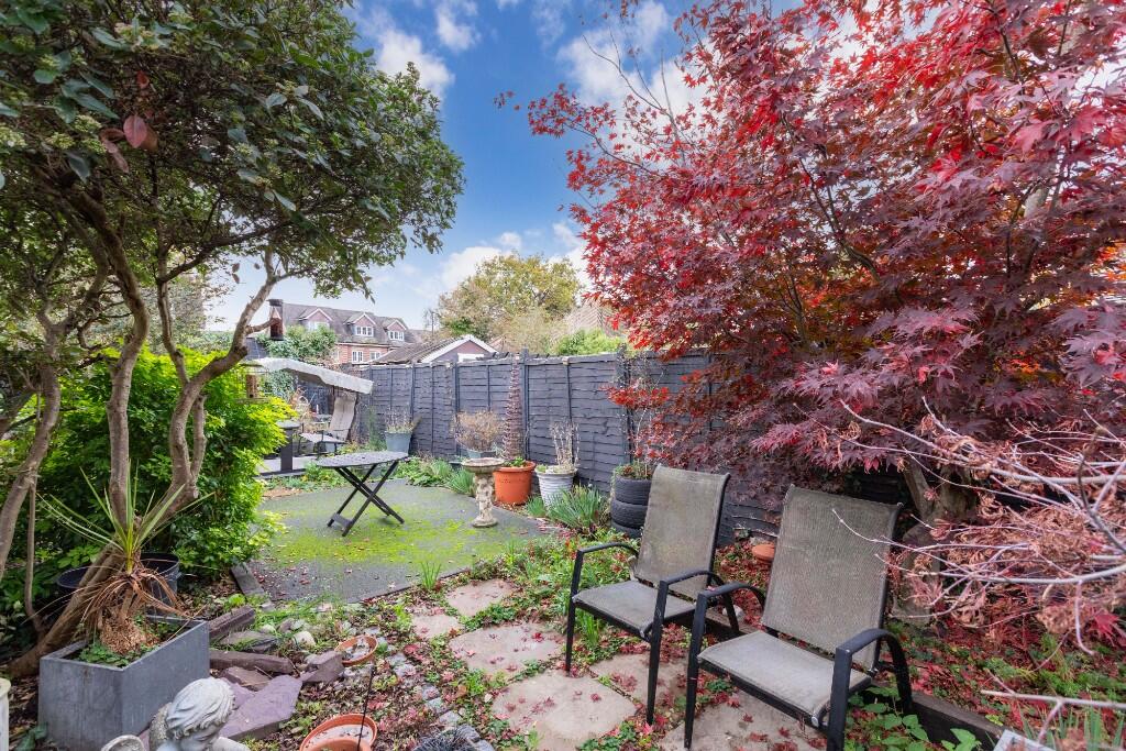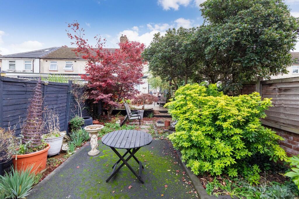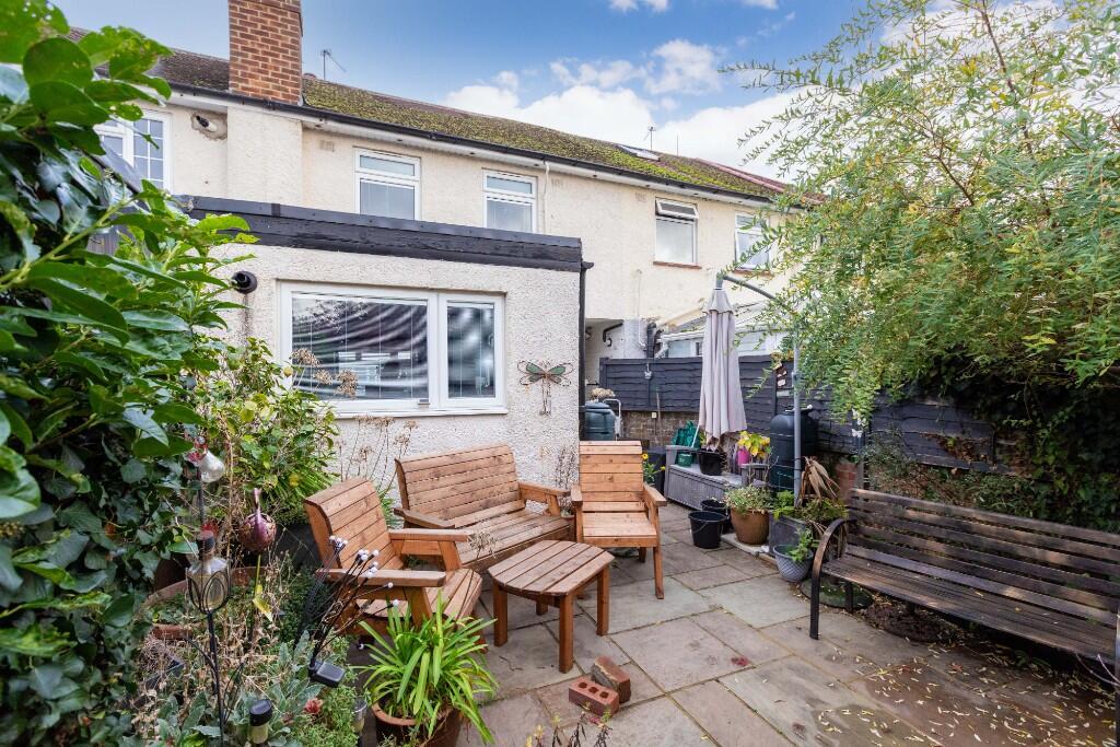 This is a three-bedroom terraced house located in Cippenham Green, Slough. The property offers two bathrooms and has a square footage of 805.14 sqft. The house is situated in a location with good access to schools and transportation. The interior appears to be in generally good condition, with a modern kitchen and bathrooms, although some areas could benefit from updating. The property includes a garden that requires some maintenance. Considering the location, condition, and size, the asking price of £424,950 seems reasonable for the area.