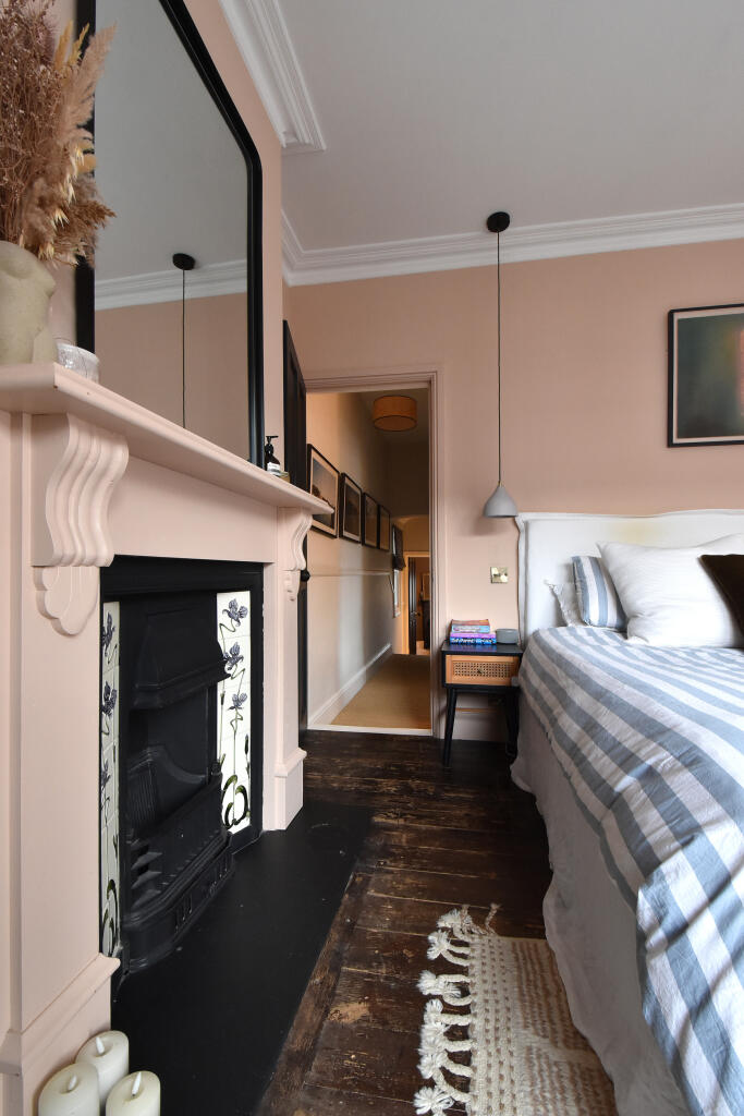 End-of-terrace three-bedroom Victorian home, recently renovated to a high specification. Corner plot with wraparound garden and insulated garden office. Open-plan kitchen/diner with island, bright living space, wood burner, excellent storage, close to Honor Oak Park station and high street.