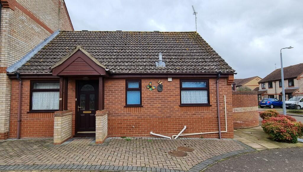 A two bedroom end of terrace bungalow situated within a close, offered chain free with low maintenance gardens, a garage and driveway parking.