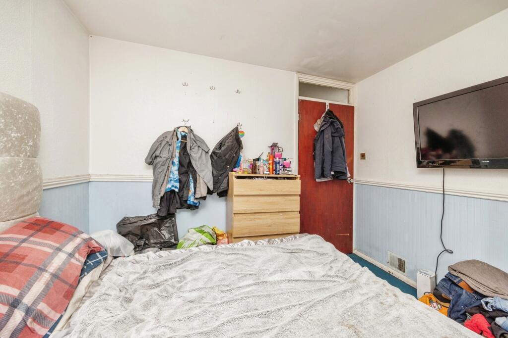 This three-bedroom, two-bathroom end-of-terrace house in Livingston South is listed at £139,995. The property is situated within reasonable proximity to the Livingston South train station, offering convenient access to public transportation. The house’s internal condition is a mixed bag. While certain rooms, particularly the living areas, are presented neatly with modern features such as laminate flooring and a relatively modern kitchen, the bedrooms display a degree of disorganization and clutter. Some walls show evidence of needing repair. The presence of a garden is a positive, although its size is moderate, and the photographs show it needs some upkeep. The listed price falls within the range of comparable properties in the area, which also show some variations in condition, hence providing a realistic asking price. Buyers should approach this property with realistic expectations regarding necessary tidying, potential maintenance/repairs, and improvements. The house would especially benefit from a thorough clean and decluttering, with additional updates potentially enhancing appeal.