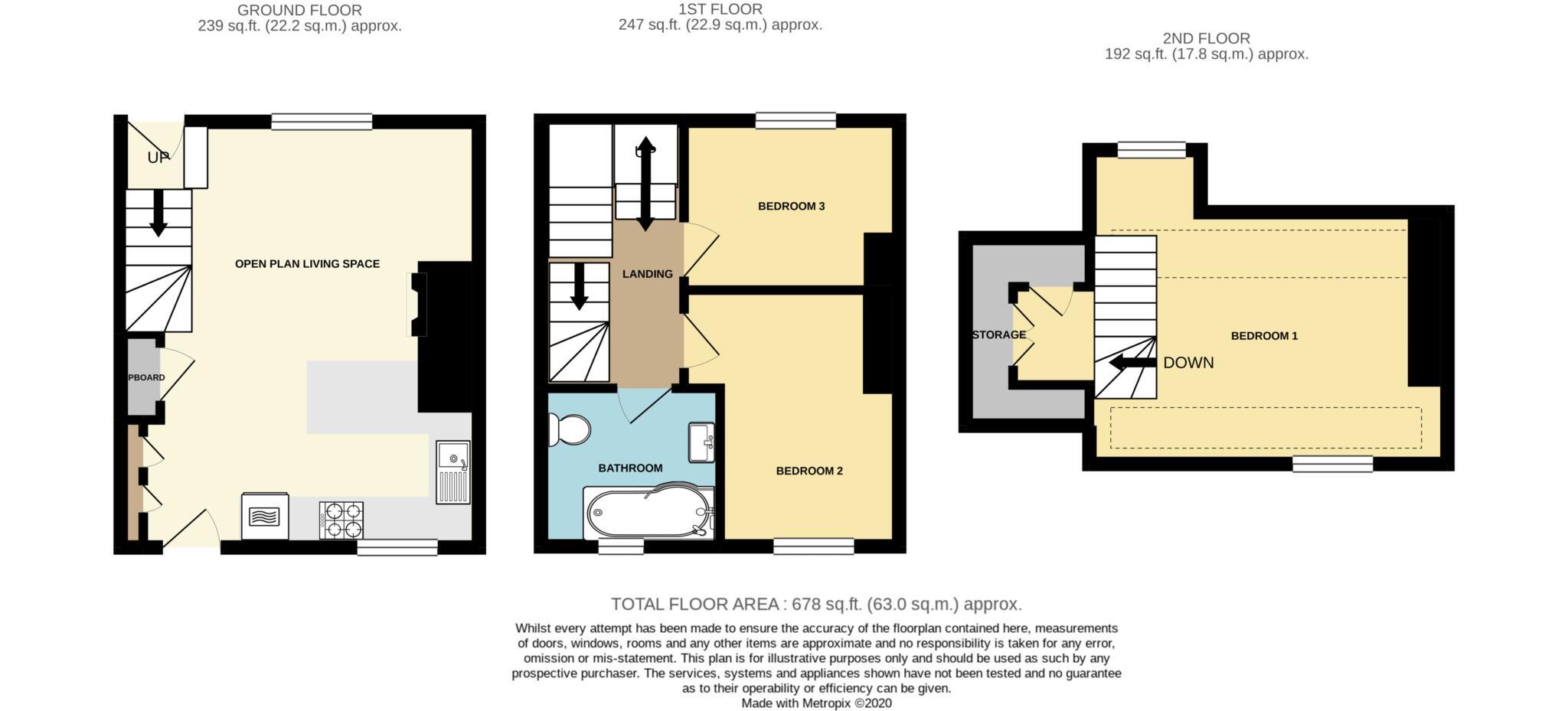 The property is located in Christchurch St East, Frome, Somerset. It’s a three-bedroom, one-bathroom semi-detached house with a total area of 678 sqft and a plot size of 678 sqft. The list price is £250,000.