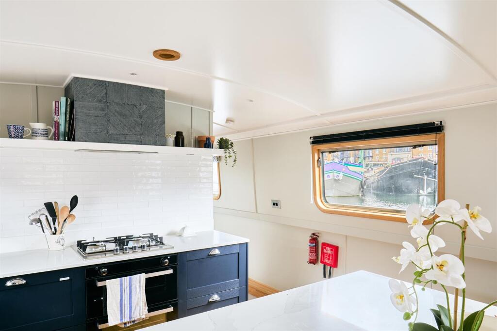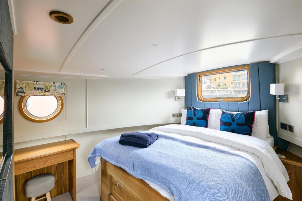 SHORT LET: This immaculately finished 698 sq. ft, two bedroom houseboat moored at Limehouse Basin offers a wonderful opportunity to try living aboard or a London pied de terre. This wide beam comprises a generously sized kitchen, tastefully designed with quartz work surfaces and integrated appli...