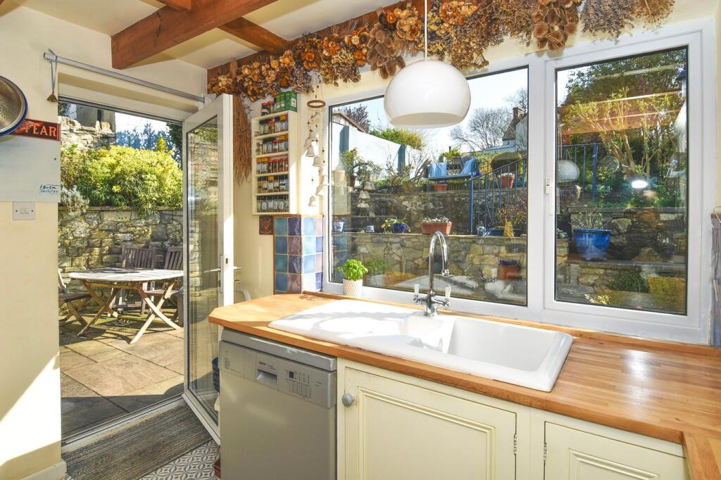 A delightful four-bedroom home, filled with light and colour, with lovely gardens, driveway and garage. On an elevated plot this beautiful property is within walking distance of the village centre and has spectacular views of Wedmore and beyond.