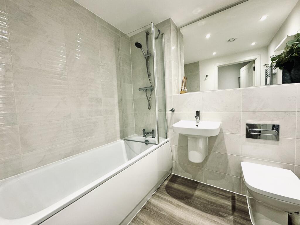 This property is a one-bedroom apartment located in Hook, Hampshire. The apartment is modern and well-presented, as seen in the provided images. It benefits from a small balcony. The location is convenient, with Hook railway station within walking distance, providing easy access to commuting routes. There are also highly-rated primary schools nearby. While the apartment itself is in excellent condition, the overall area has a higher average property price and size, making this apartment relatively smaller and more affordable. The lack of plot size is typical for an apartment.