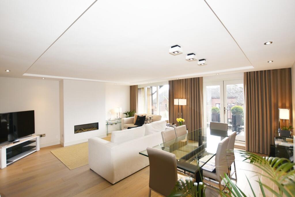 With SOUTH FACING PRIVATE TERRACE, this is a GROUND FLOOR apartment with LUXURY FURNISHINGS, SUBLIME SHOWER ROOMS, FEATURE FIREPLACE and DRIVEWAY with ELECTRIC GARAGE