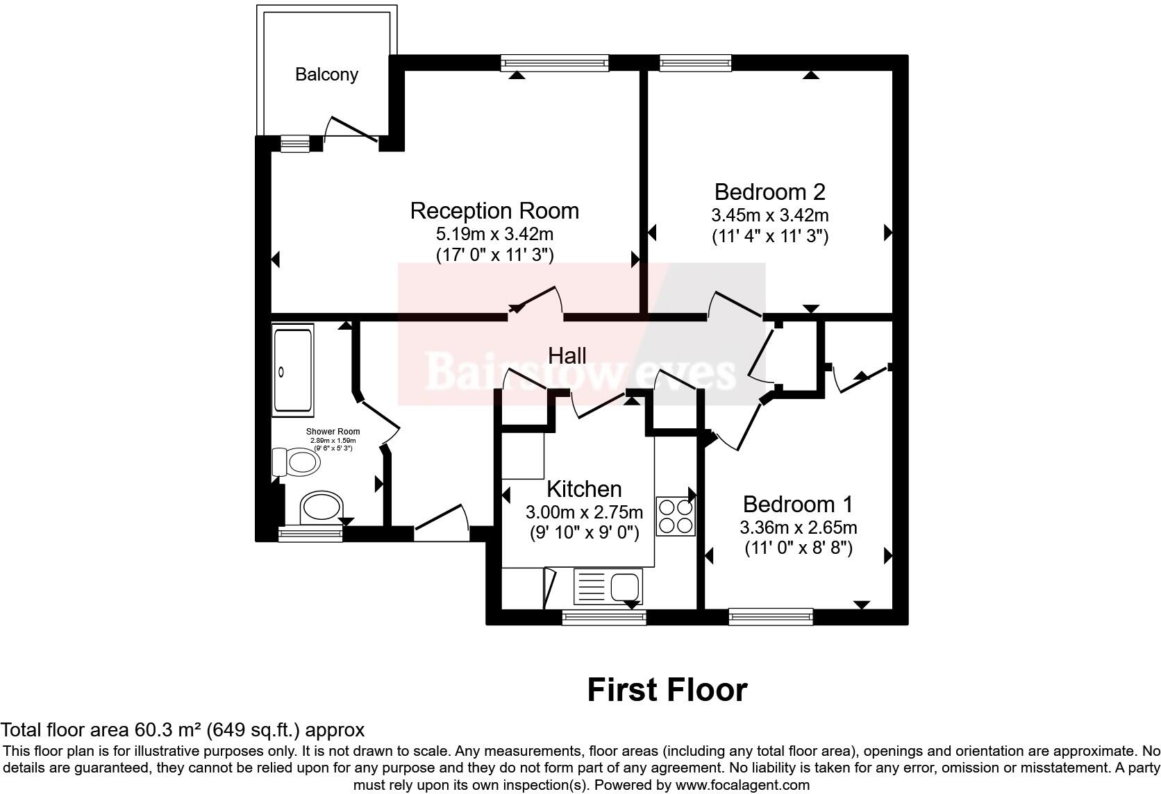 The property is a 2-bedroom flat located in the Latchmere area of Wandsworth, London. The flat is 552.51 sqft and is listed at £335,000. The average price for properties in the area is significantly higher at £628,179, with an average price per sqft of £782. This suggests that the listed price of the property may represent good value. The property appears to be in good condition based on the provided images. The kitchen and bathroom seem recently updated and well-maintained. The living areas are clean and tidy. There is no obvious evidence of significant repairs or renovations needed. While specific details on the plot size are provided (649.06 sqft), the images do not show a large garden. The available space may be limited to a small balcony or patio area. The location benefits from being close to several schools, including Harris Academy Battersea (rated Outstanding by Ofsted), and is within reasonable distance of several transport links. This makes the property attractive to families and commuters.