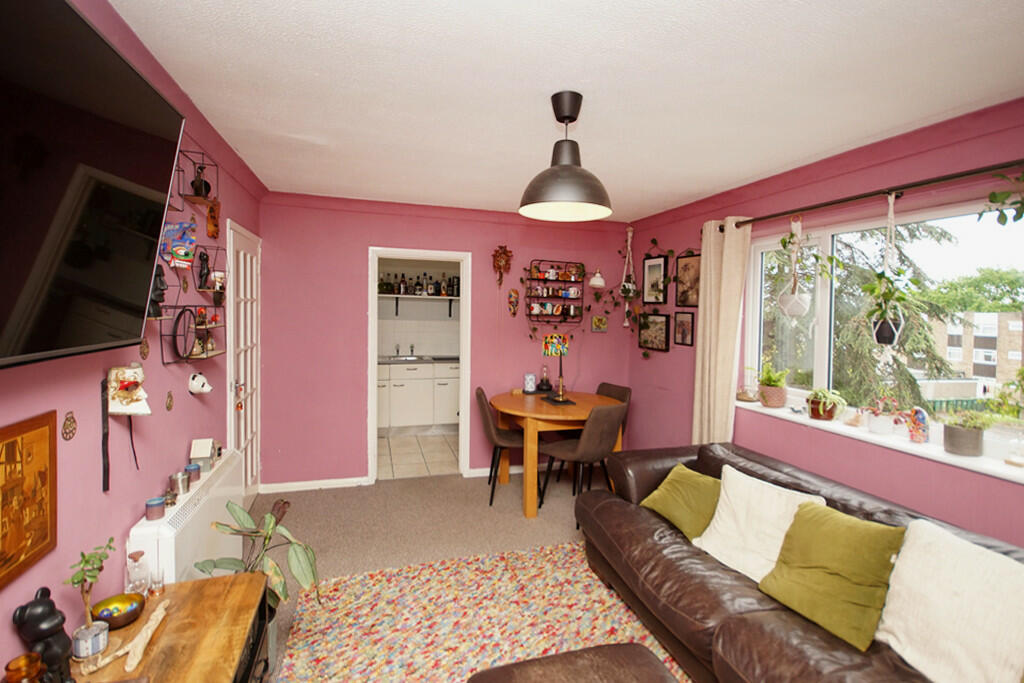 Situated in this popular development of similar properties is this purpose-built one bedroom top floor flat with a garage in a nearby block. Accommodation comprises hallway. living room, kitchen, bedroom and shower room. The property is heated by electric night storage heaters.