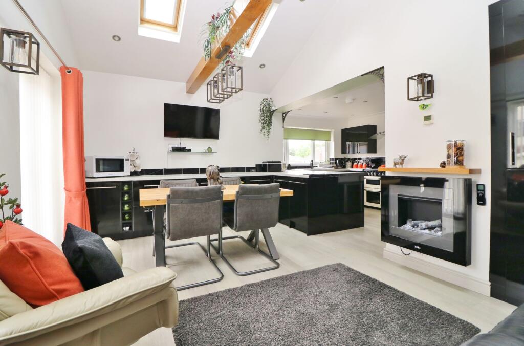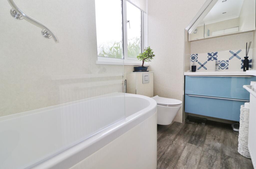 Situated on a corner plot, this extended, three bedroom, chalet home benefits from ample driveway parking, an attractive, landscaped garden and further off road parking to the side with a large, detached workshop, which was previously the garage. The beautifully presented accommodation comprises ...
