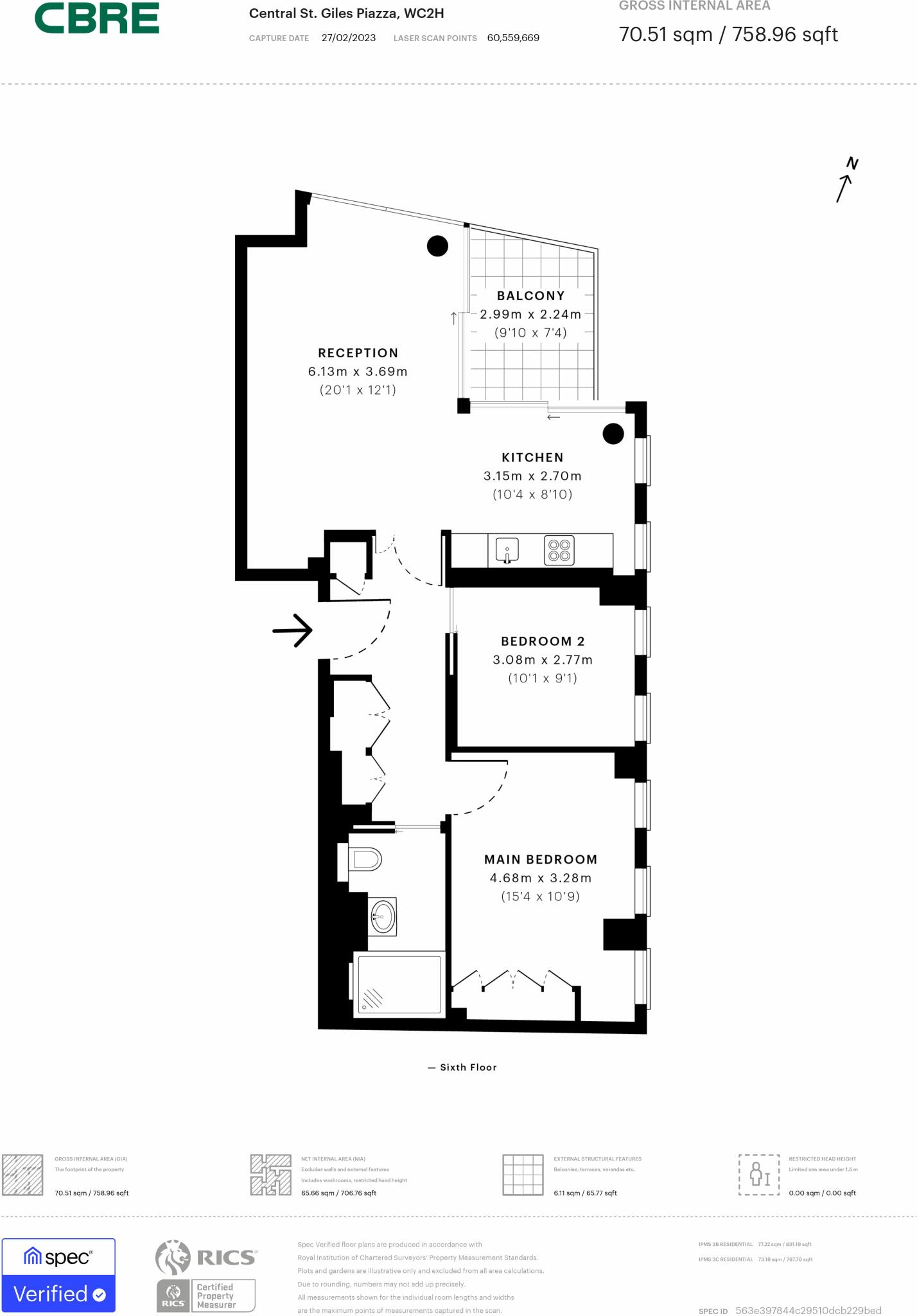 Chic 2 bedroom apartment with a balcony for sale in St. Giles Piazza, Covent Garden, WC2H. This well presented 2 bedroom apartment is located on the 6th floor. Offering an open-plan kitchen living room layout and a private balcony which can be accessed from the living room....