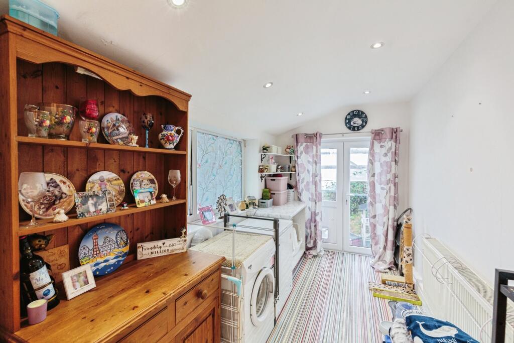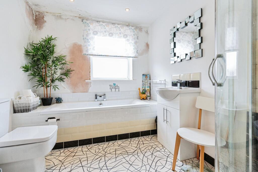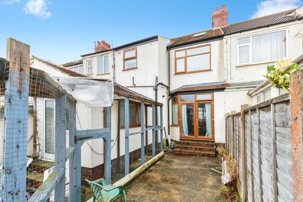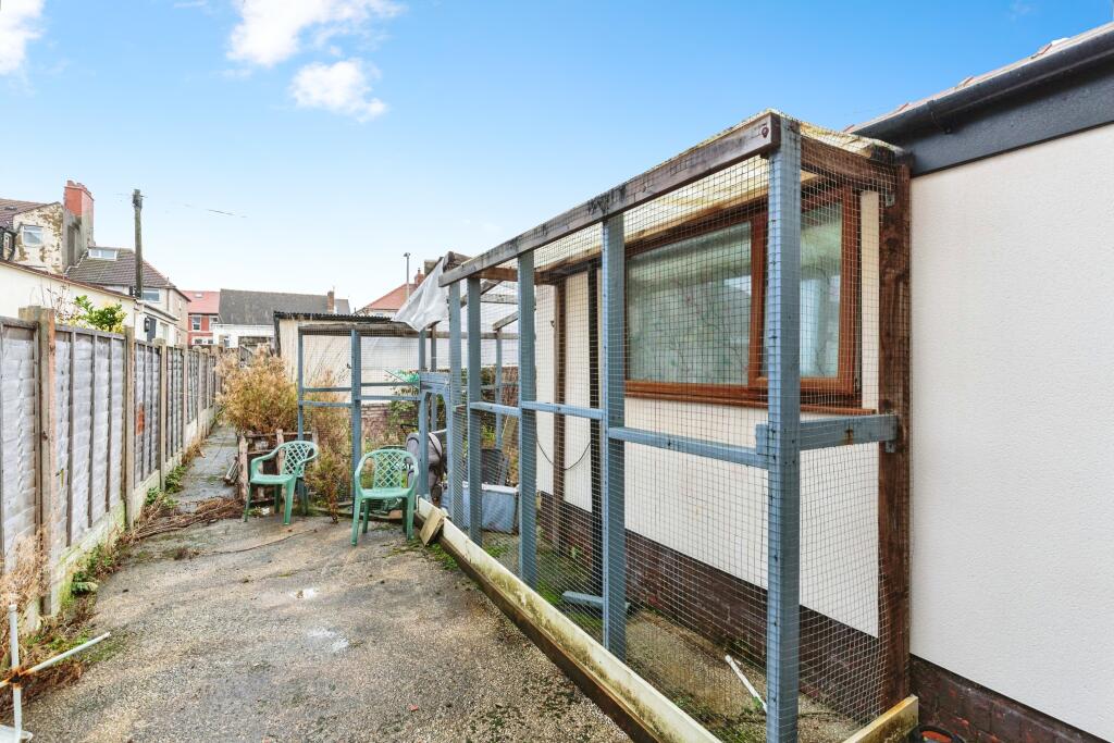 This is a four-bedroom terraced house located on Haddon Road in Bispham, Blackpool. The property is listed for £145,000. The square footage of the property is 1,291.13, which is above the average square footage for the area. The property is located in a residential area with access to local schools and amenities. The property is located 3.05 KM from Layton (Lancs) train station. The property appears to be in need of some renovation, particularly in the bathroom. Some rooms appear dated. However, the property looks to be in a generally liveable condition. The property has a garden, although it requires some maintenance. The price per square foot is approximately £112, which is significantly lower than the average of £181 per square foot for the area, suggesting the property is competitively priced.