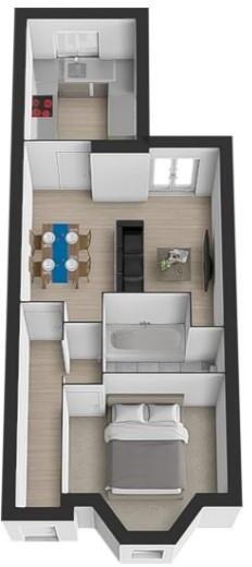 This property is a one-bedroom, one-bathroom terraced house located in Totterdown, Bristol. The property has recently undergone some renovations, with a modern kitchen and bathroom. It benefits from a good-sized rear garden with a decked area, offering views over the city. The location is convenient, with a primary school nearby and easy access to Bristol Temple Meads train station. However, the plot size is small and the property does not have a large amount of land.