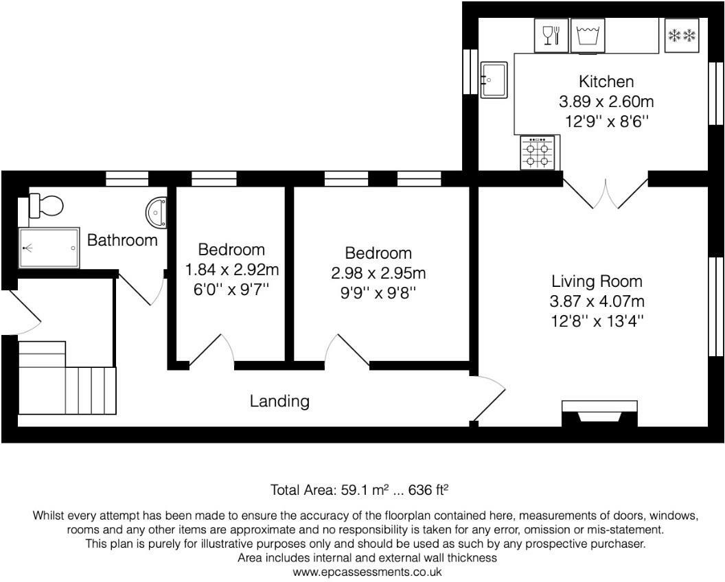 An impressive spacious and light apartment, set in an elevated position with far reaching views. Well equipped kitchen, generous living room with a log burning stove and southerly outlook, two bedrooms, bathroom. No onward chain.