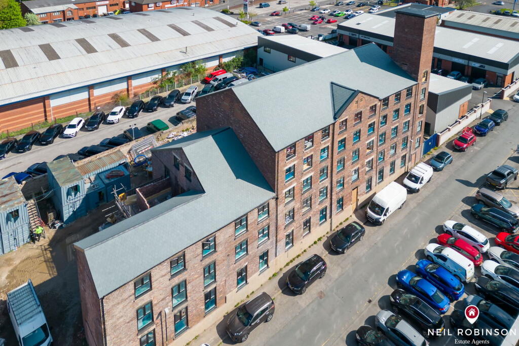 The property is a modern 2-bed apartment in a converted mill building. The location is convenient, with nearby schools and a train station. The price seems relatively low compared to the average house price in the area, but comparable to other apartments on Standish Street. The apartment itself appears to be in excellent condition and well-maintained.