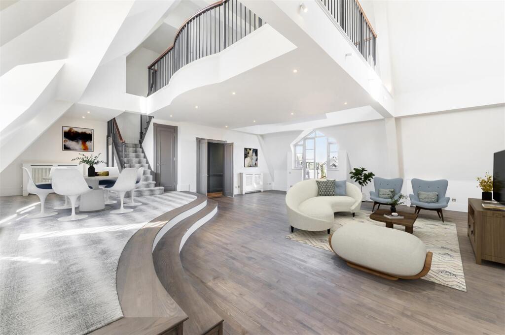 Proudly perched at the summit of what many regard as the most sought after mansion block in Hampstead Village, and spanning close to 3,000 sq ft, is this stunning three bedroom, three bathroom triplex penthouse apartment with three terraces offering expansive views across London from both north e...