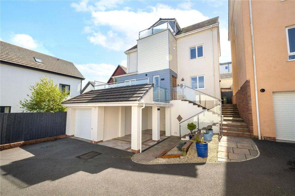 Immaculate four-storey detached home with four bedrooms, two en-suites, stunning sea views, luxury kitchen, versatile lower ground floor, garage, carport and sunny south-facing garden with summerhouse.